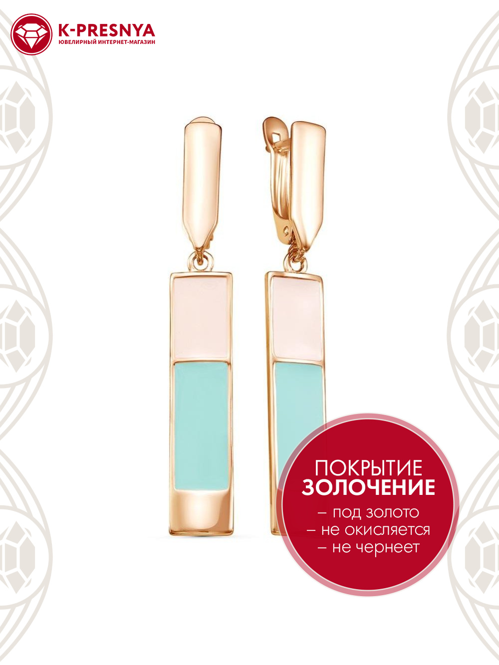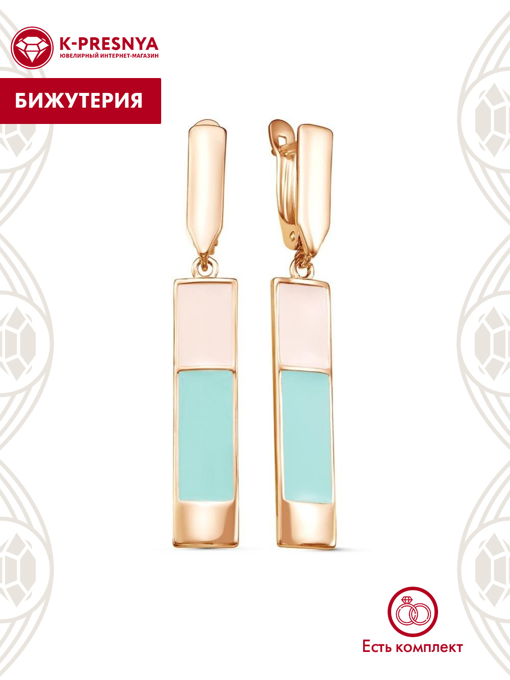 Серьги бижутерия, покрытие - золочение, отделка - эмаль, без вставок