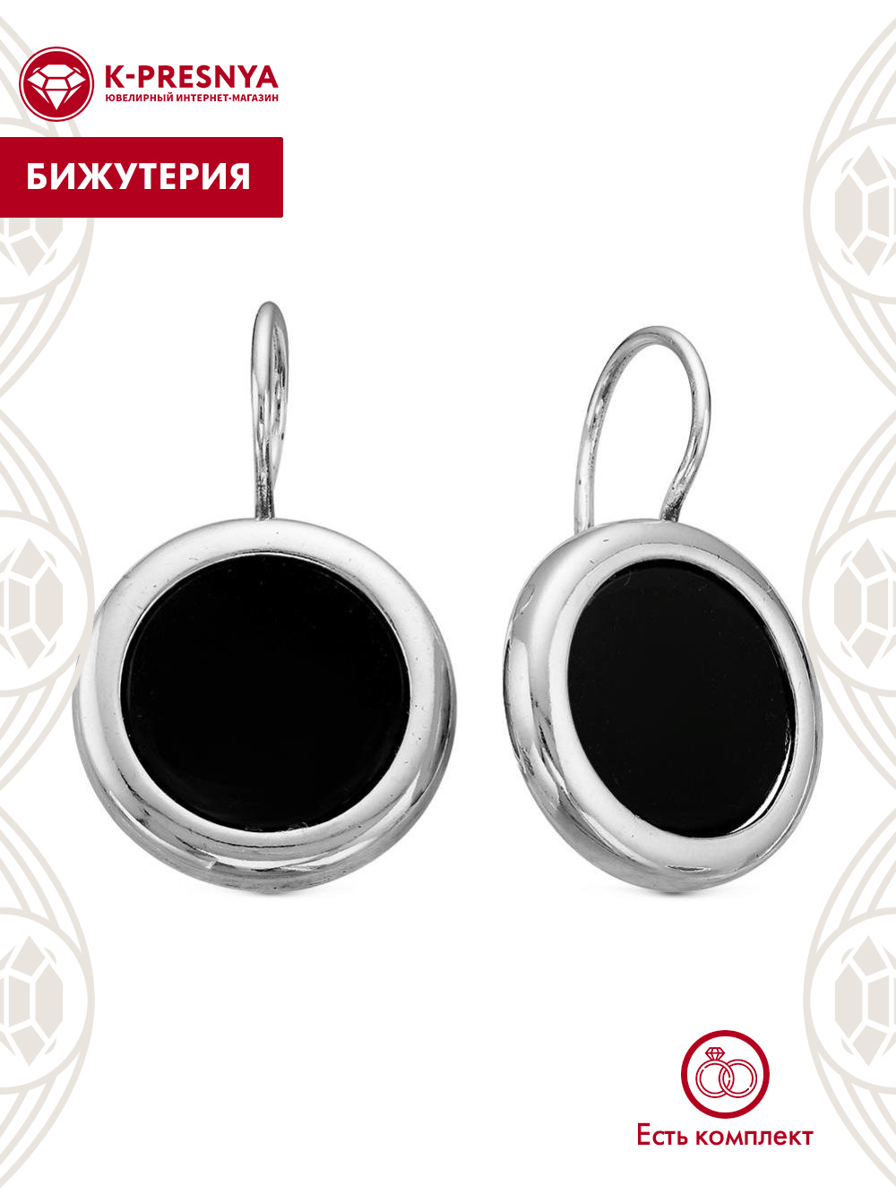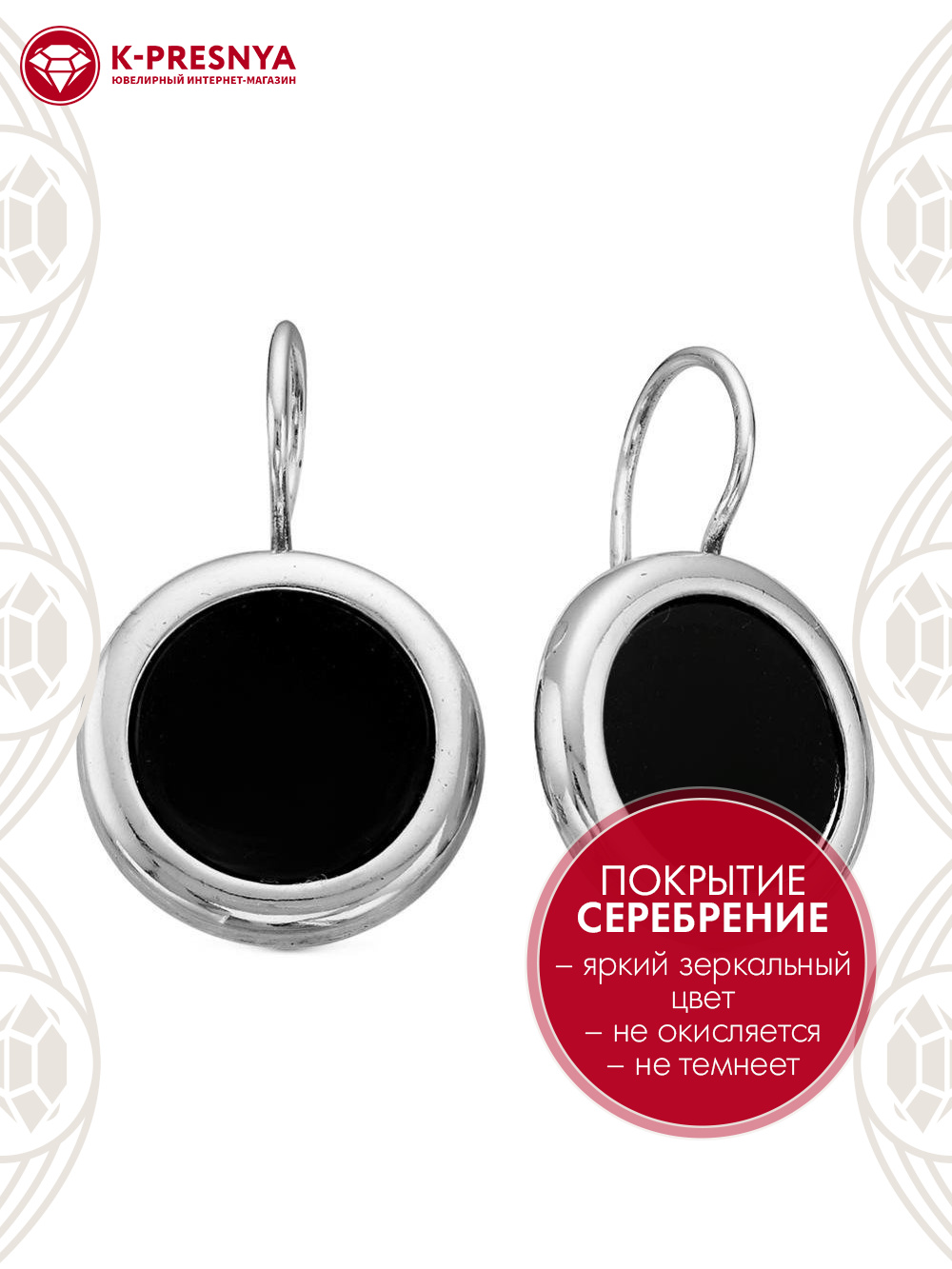Серьги бижутерия, покрытие - серебрение с оксидированием, вставка - искусственный агат черный