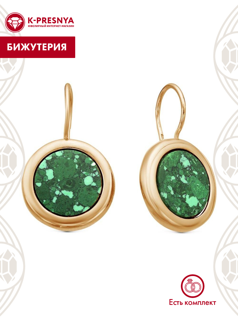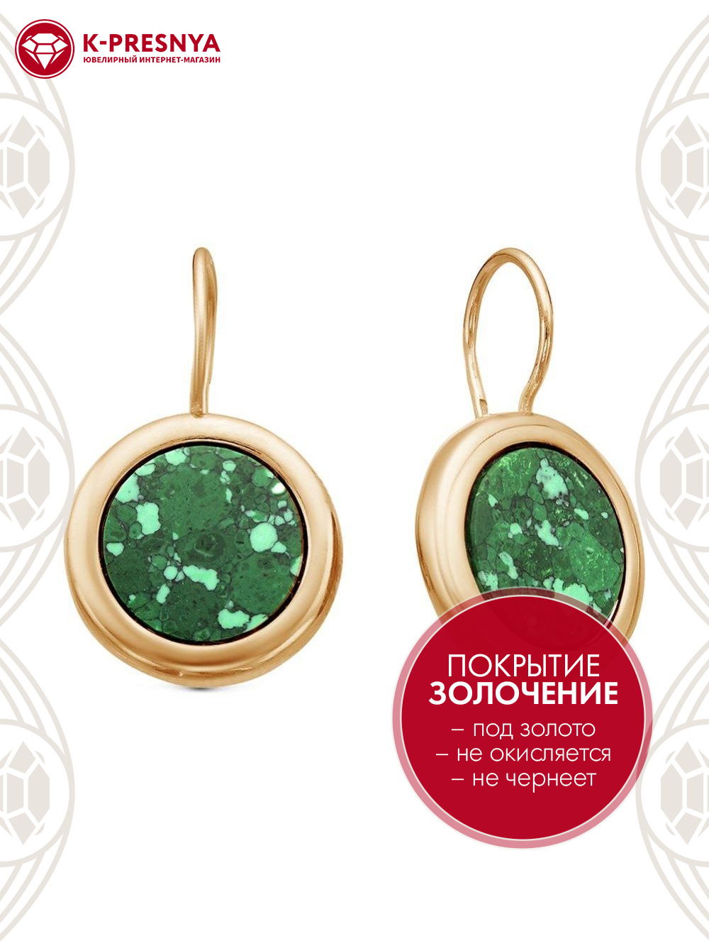 Серьги бижутерия, покрытие - золочение, вставка - искусственный малахит