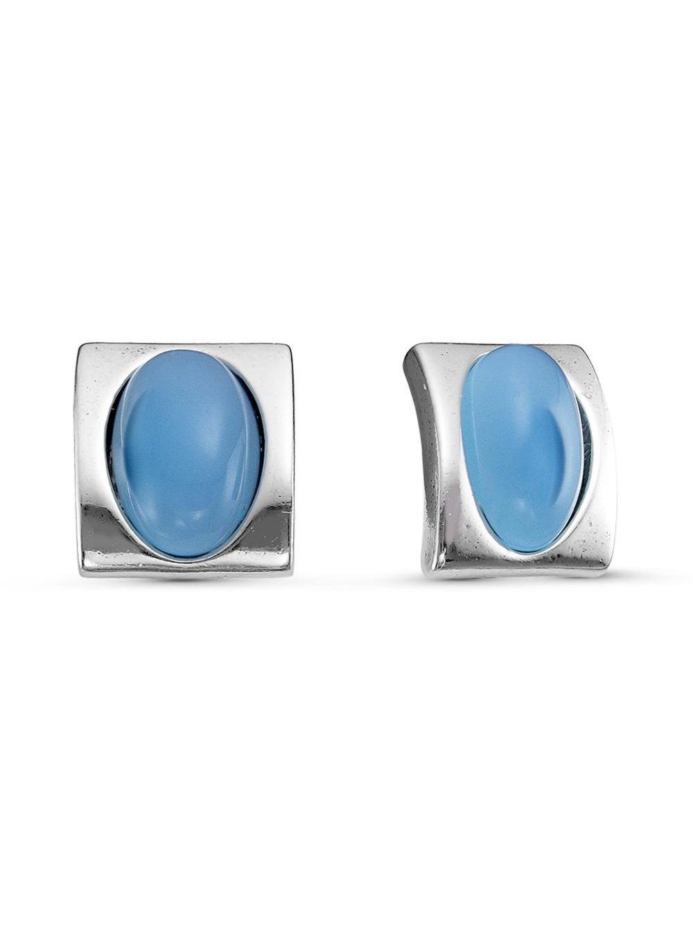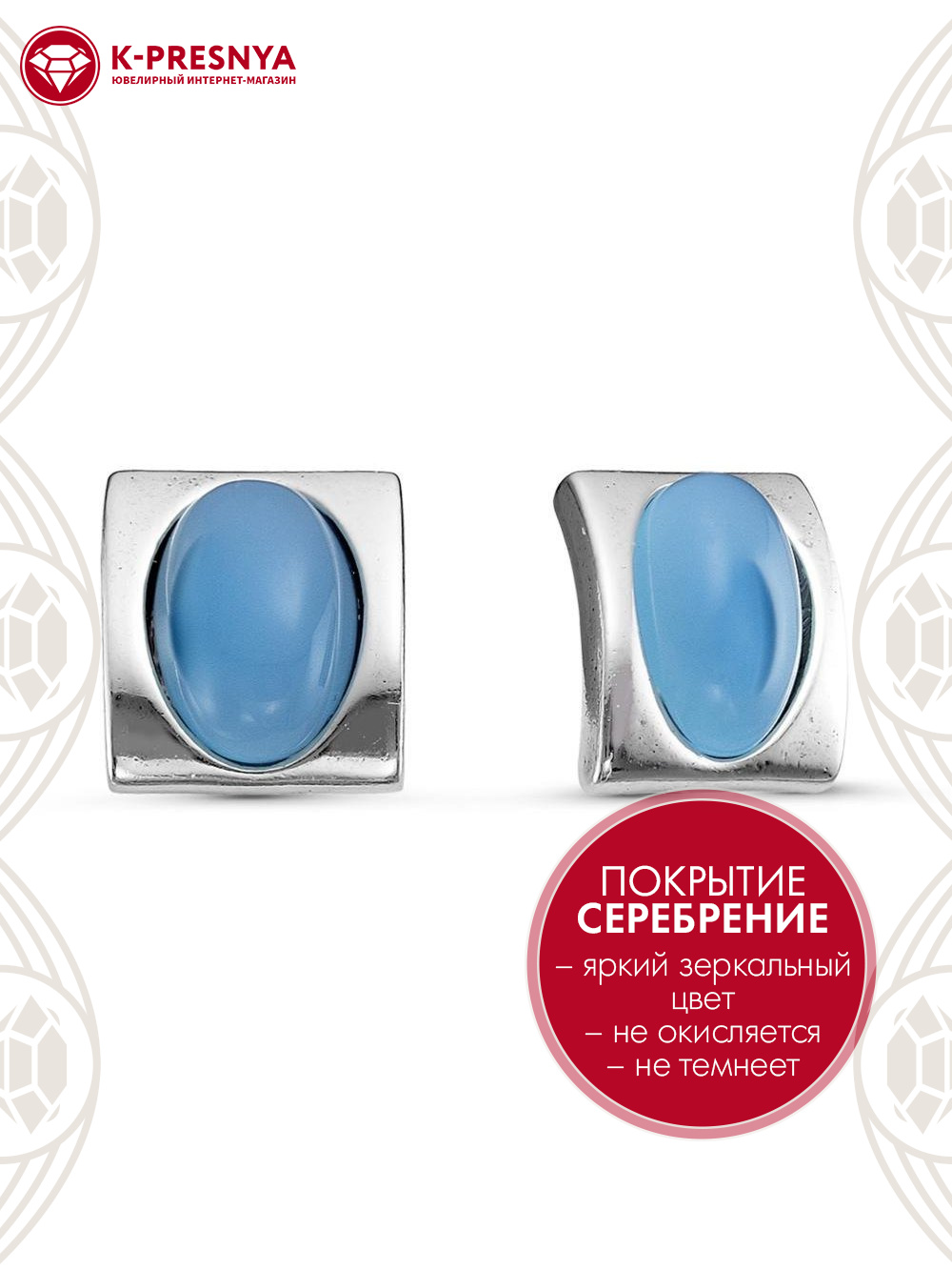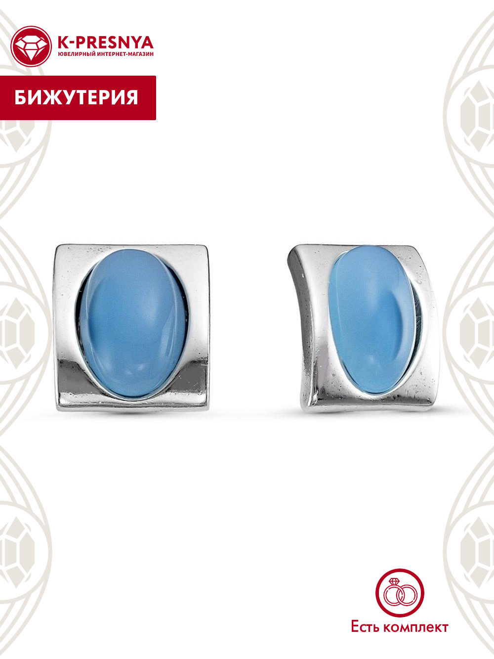 Серьги бижутерия, покрытие - серебрение с оксидированием, вставка - искусственный агат голубой