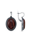 Серьги бижутерия, покрытие - серебрение с оксидированием, вставка - яшма