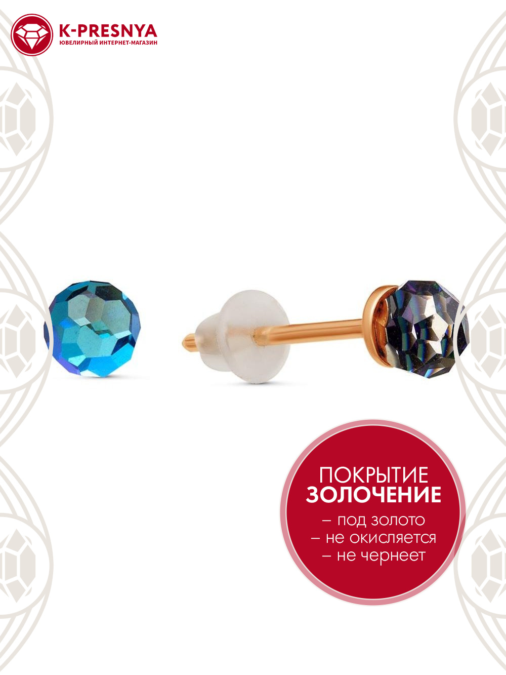 Серьги бижутерия, покрытие - золочение, вставка - стекло ювелирное preciosa