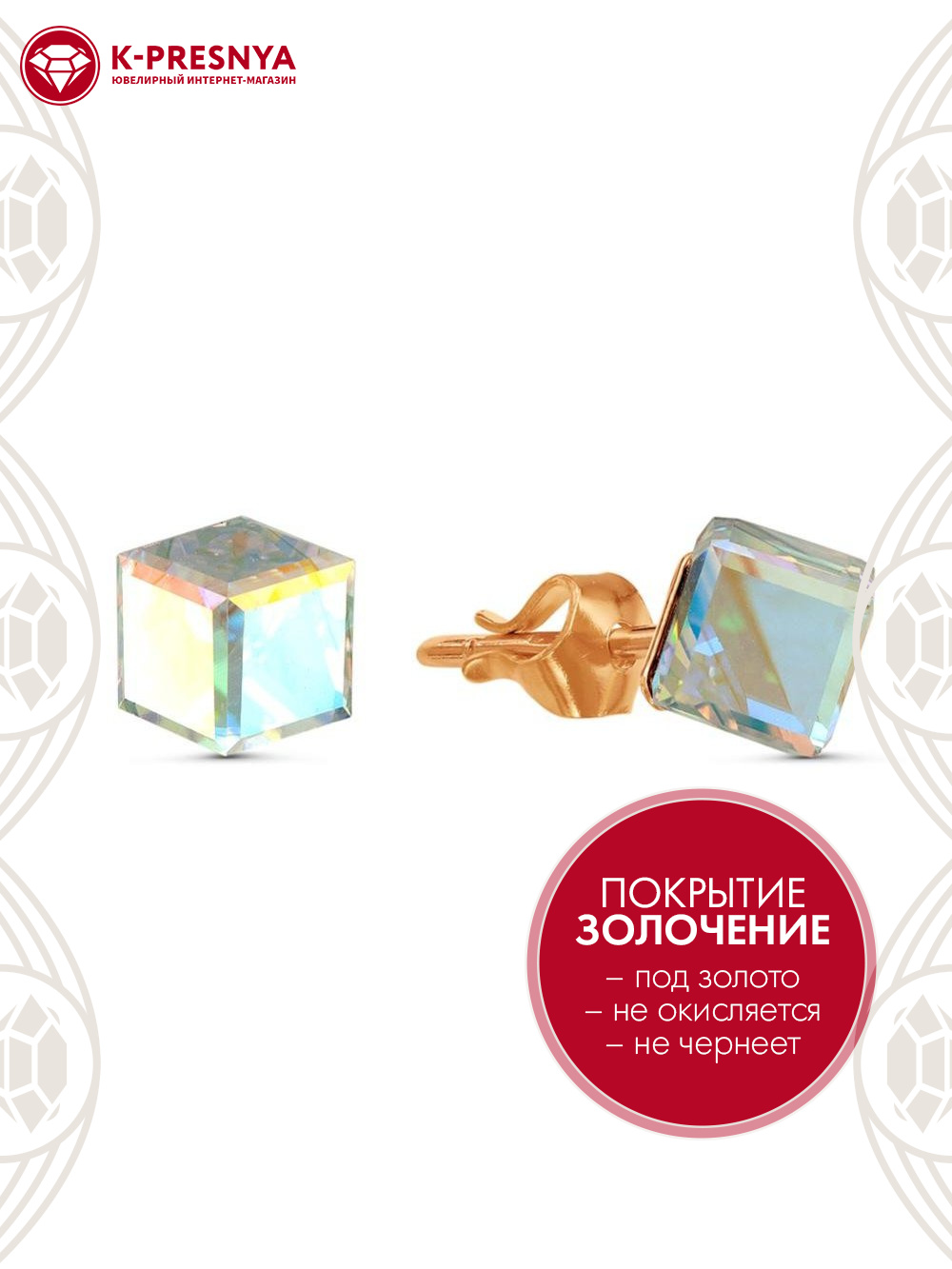 Серьги бижутерия, покрытие - золочение, вставка - ювелирное стекло европейской огранки
