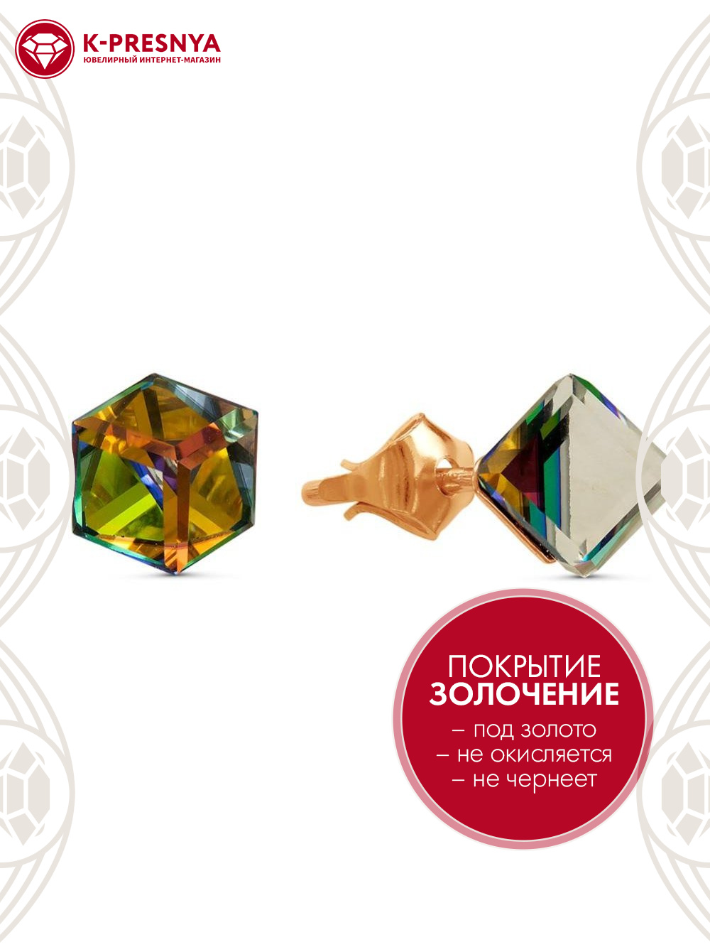 Серьги бижутерия, покрытие - золочение, вставка - ювелирное стекло европейской огранки