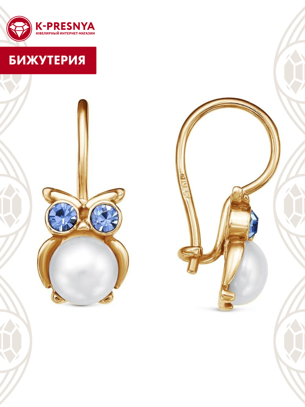 Серьги бижутерия, покрытие - золочение, вставка - имитация жемчуга, стекло ювелирное preciosa