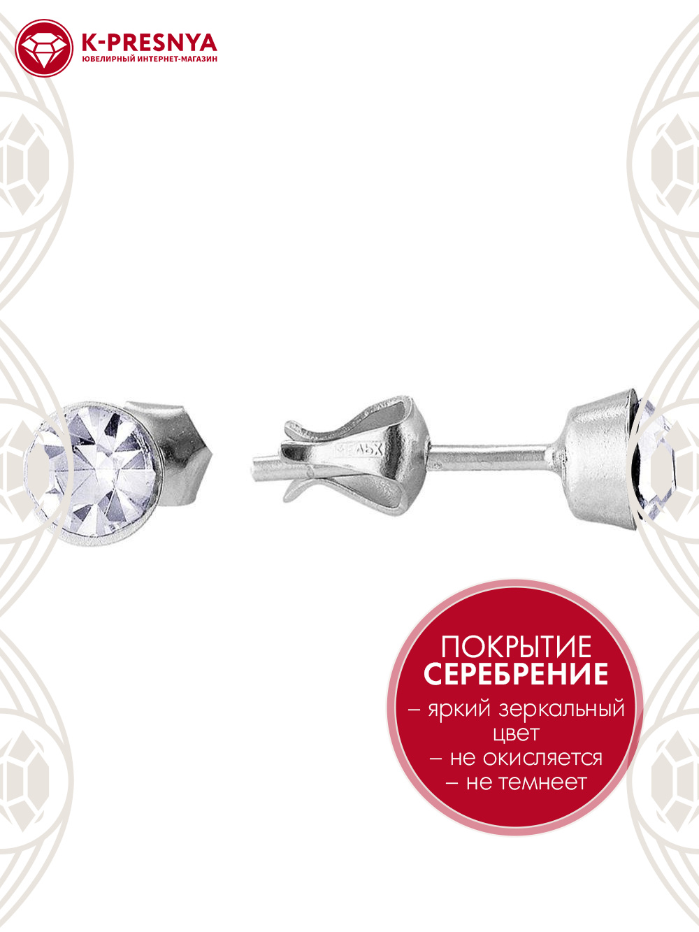 Серьги бижутерия, покрытие - серебрение, вставка - стекло ювелирное preciosa