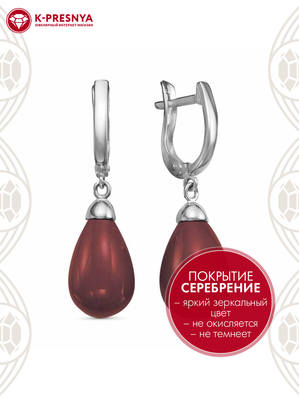 Серьги бижутерия, покрытие - серебрение, вставка - имитация жемчуга