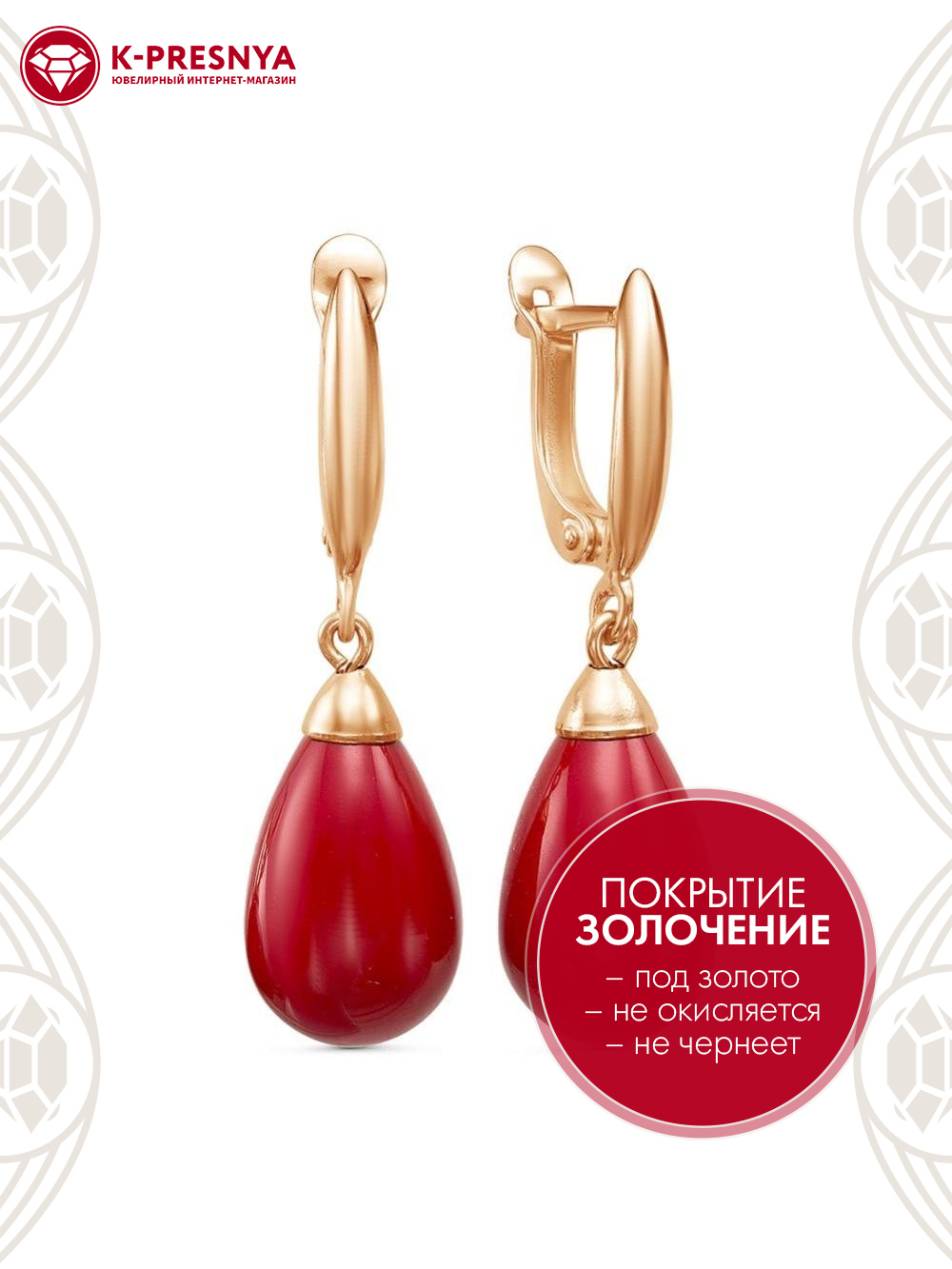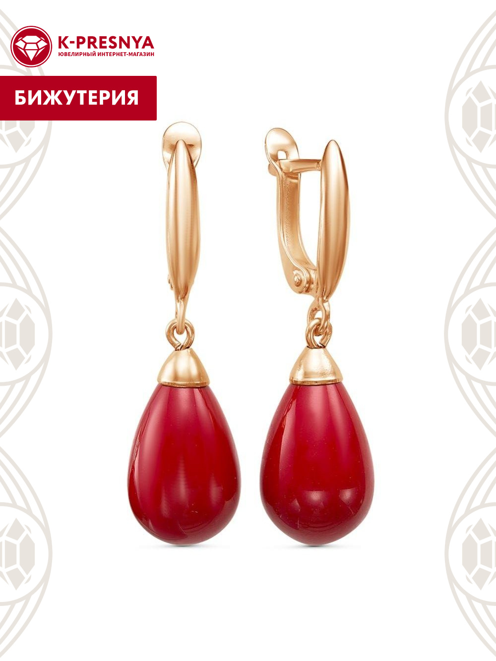Серьги бижутерия, покрытие - золочение, вставка - стекло ювелирное