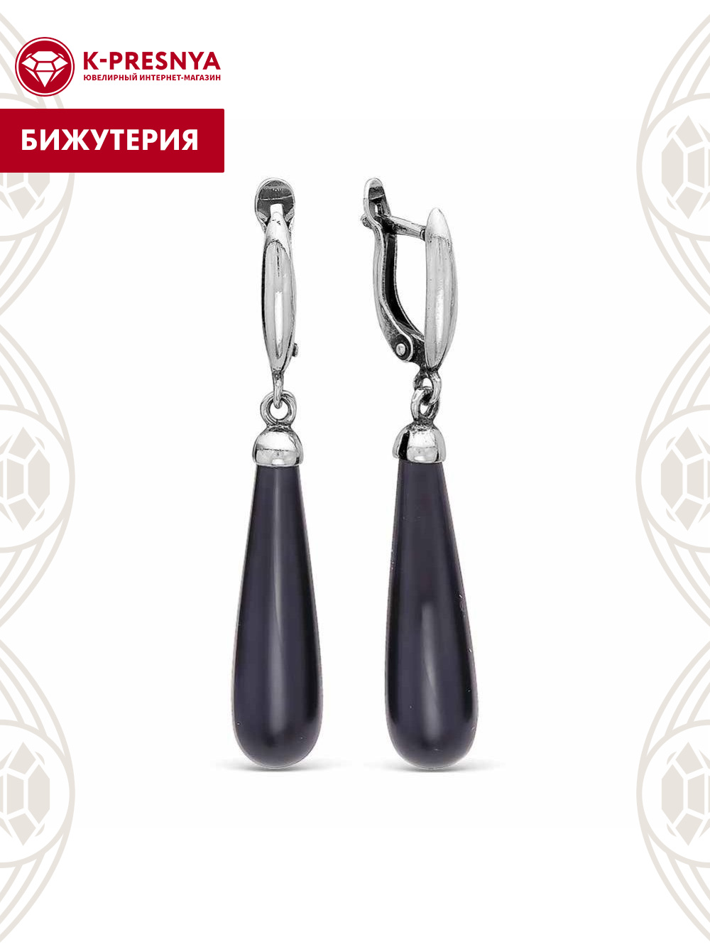 Серьги бижутерия, покрытие - серебрение с оксидированием, вставка - имитация жемчуга