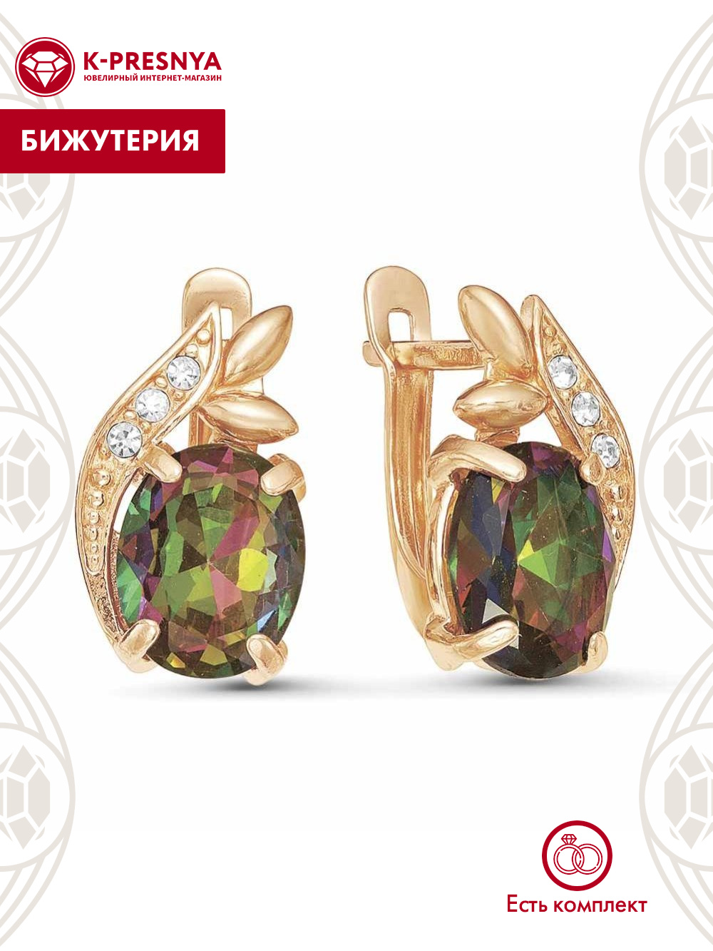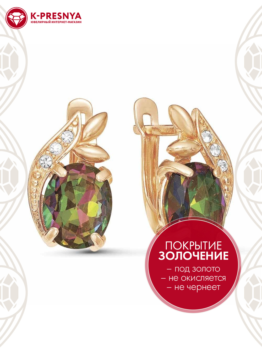 Серьги бижутерия, покрытие - золочение, вставка - стекло ювелирное, стекло ювелирное preciosa