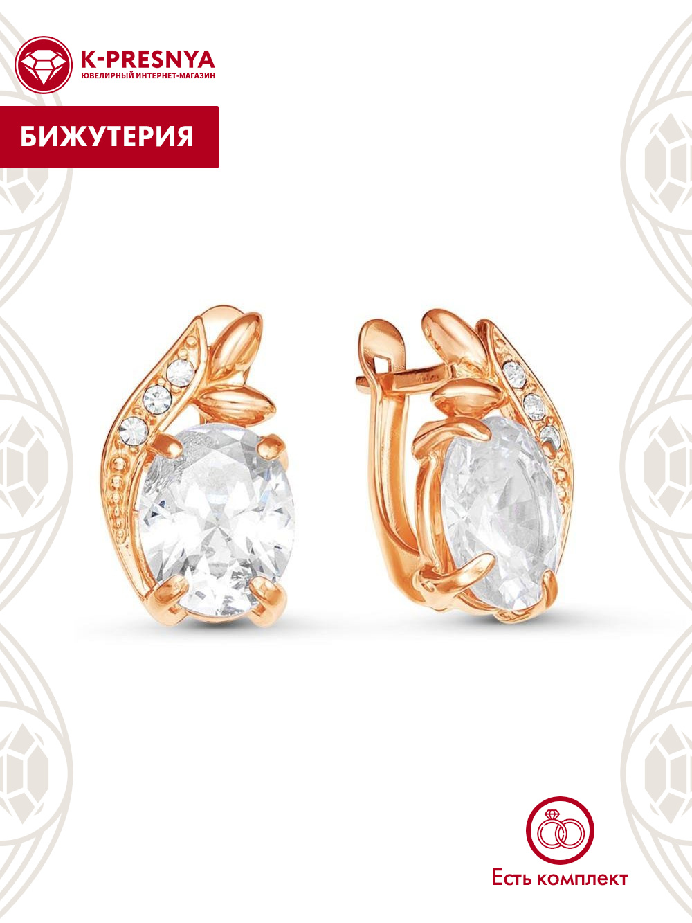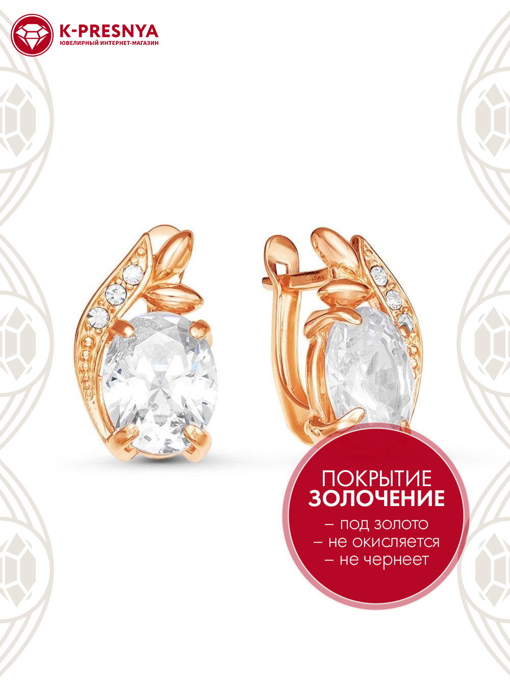 Серьги бижутерия, покрытие - золочение, вставка - стекло ювелирное, стекло ювелирное preciosa