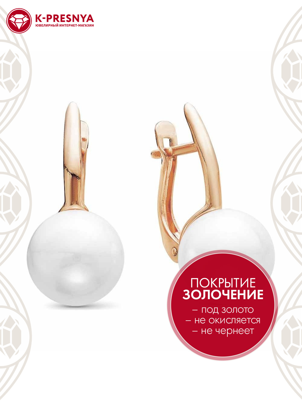 Серьги бижутерия, покрытие - золочение, вставка - имитация жемчуга