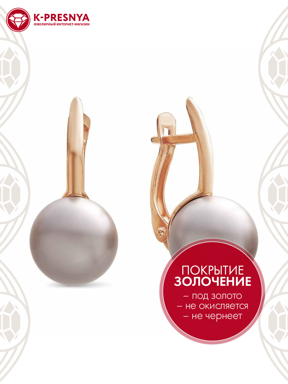 Серьги бижутерия, покрытие - золочение, вставка - имитация жемчуга