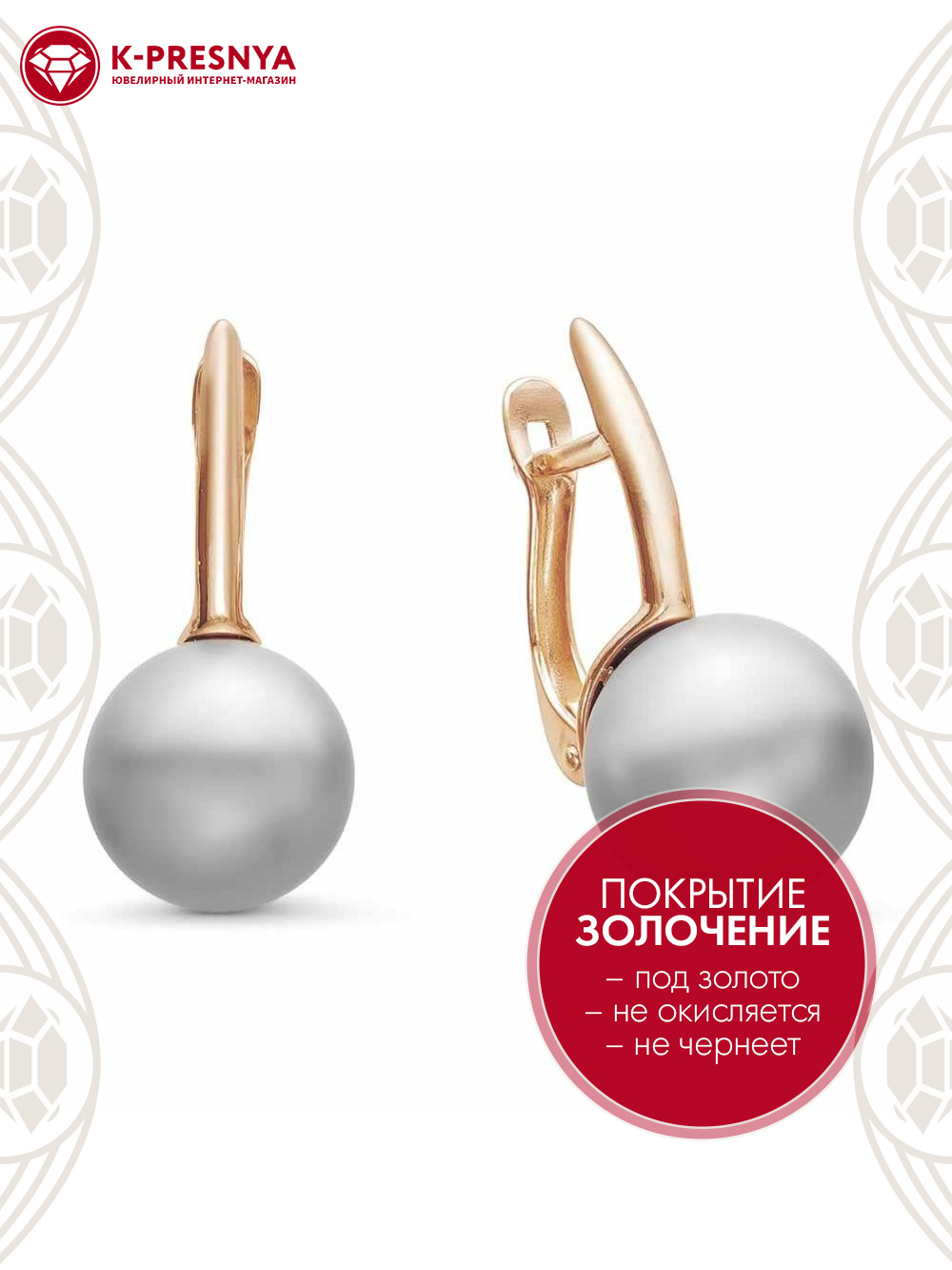 Серьги бижутерия, покрытие - золочение, вставка - имитация жемчуга