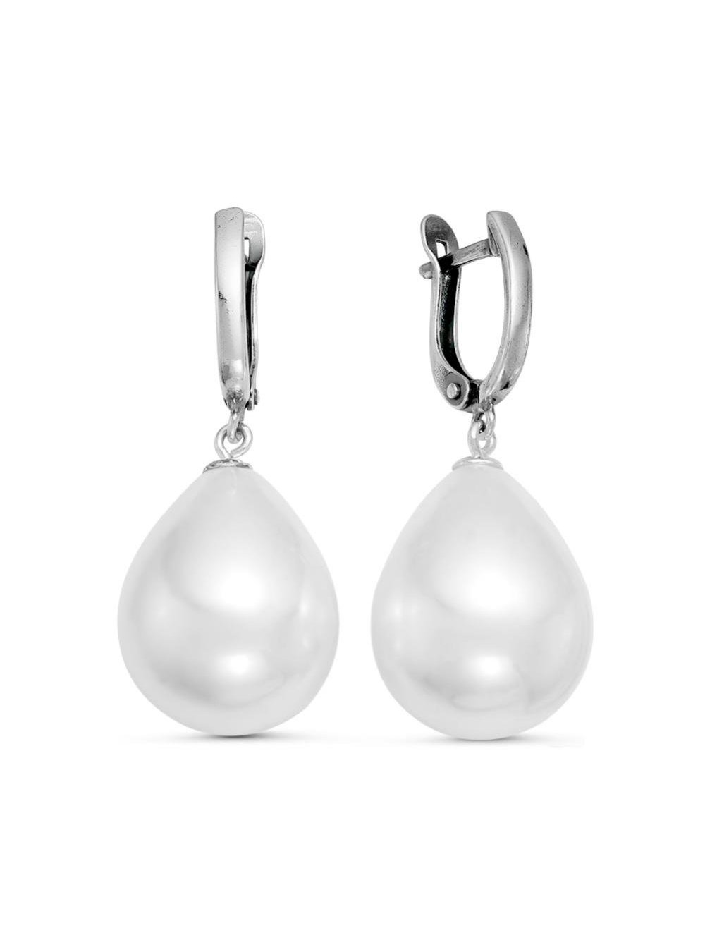 Серьги бижутерия, покрытие - серебрение с оксидированием, вставка - имитация жемчуга