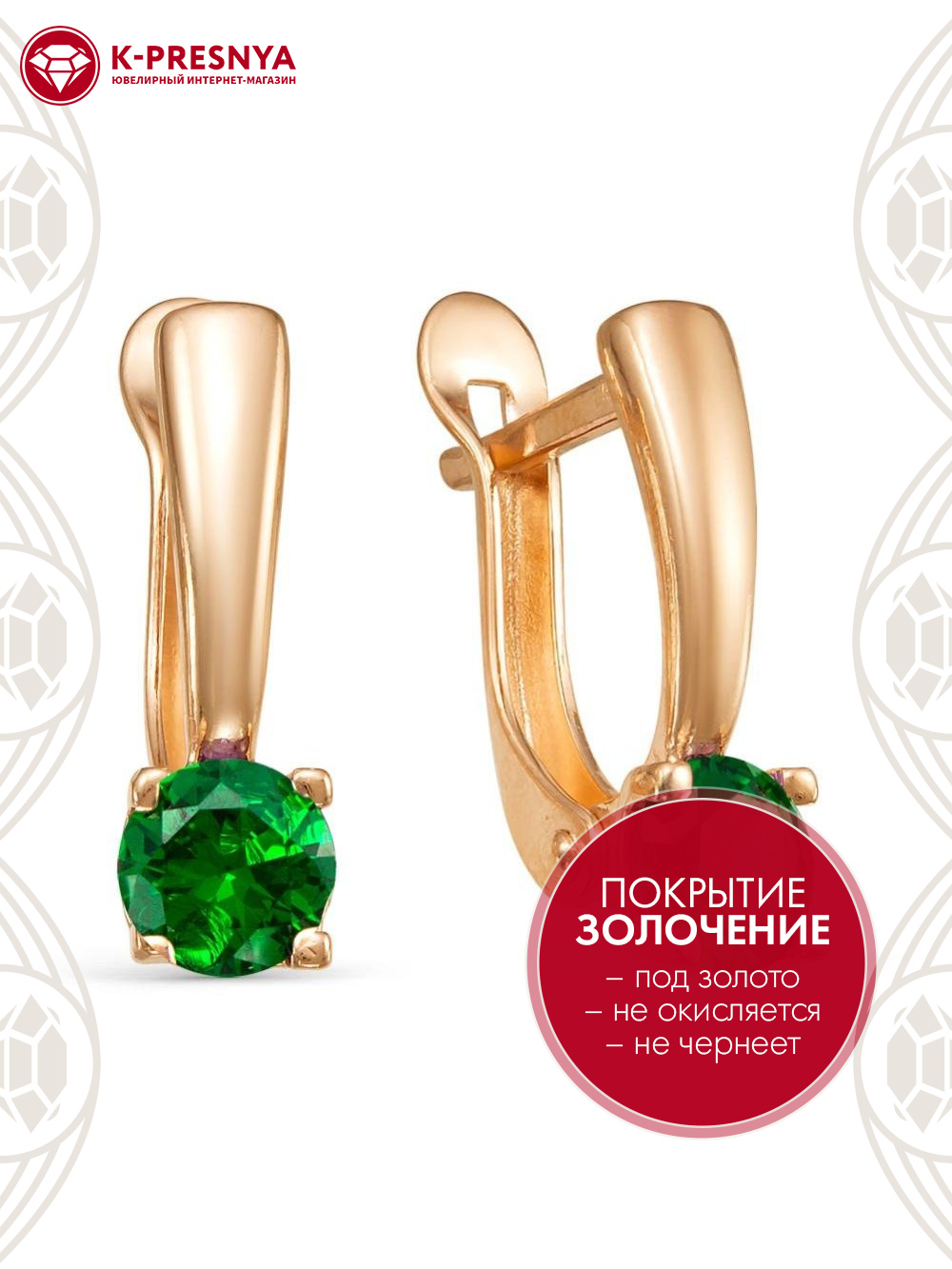 Серьги бижутерия, покрытие - золочение, вставка - искусственная шпинель