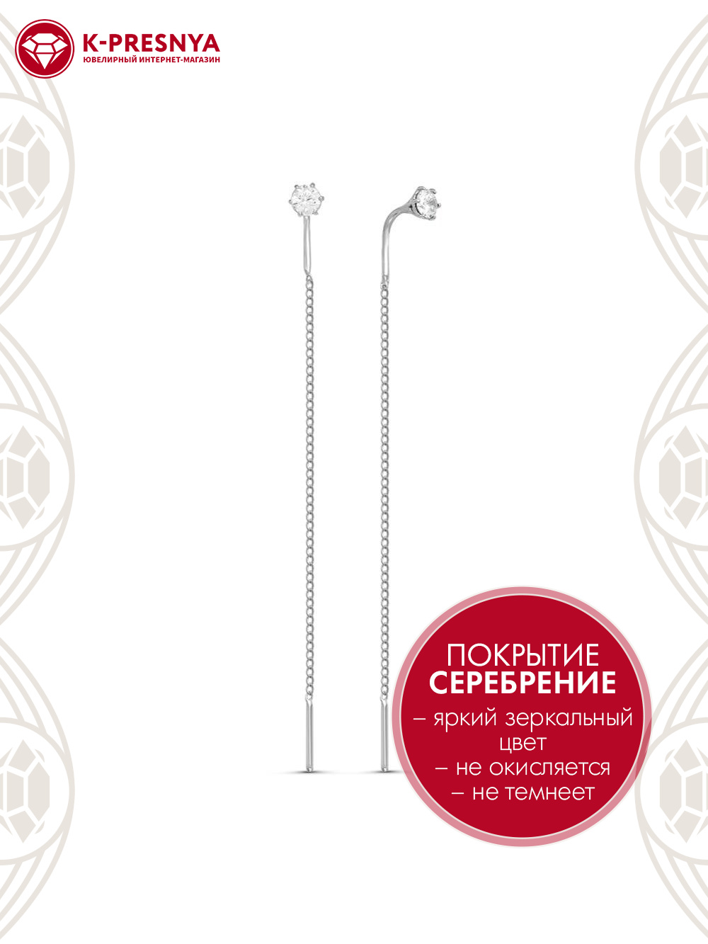 Серьги бижутерия, покрытие - серебрение, вставка - фианит (недрагоценный камень)