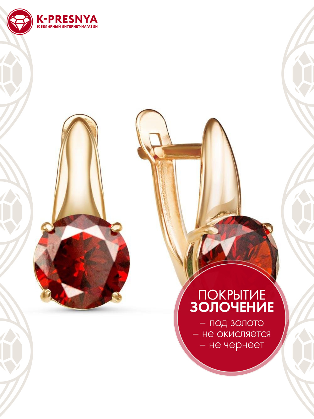 Серьги бижутерия, покрытие - золочение, вставка - фианит (недрагоценный камень)