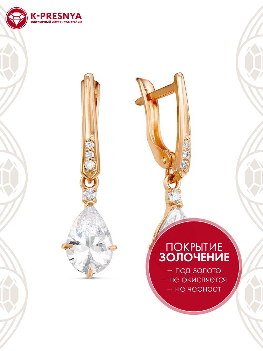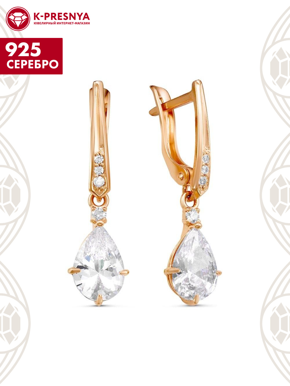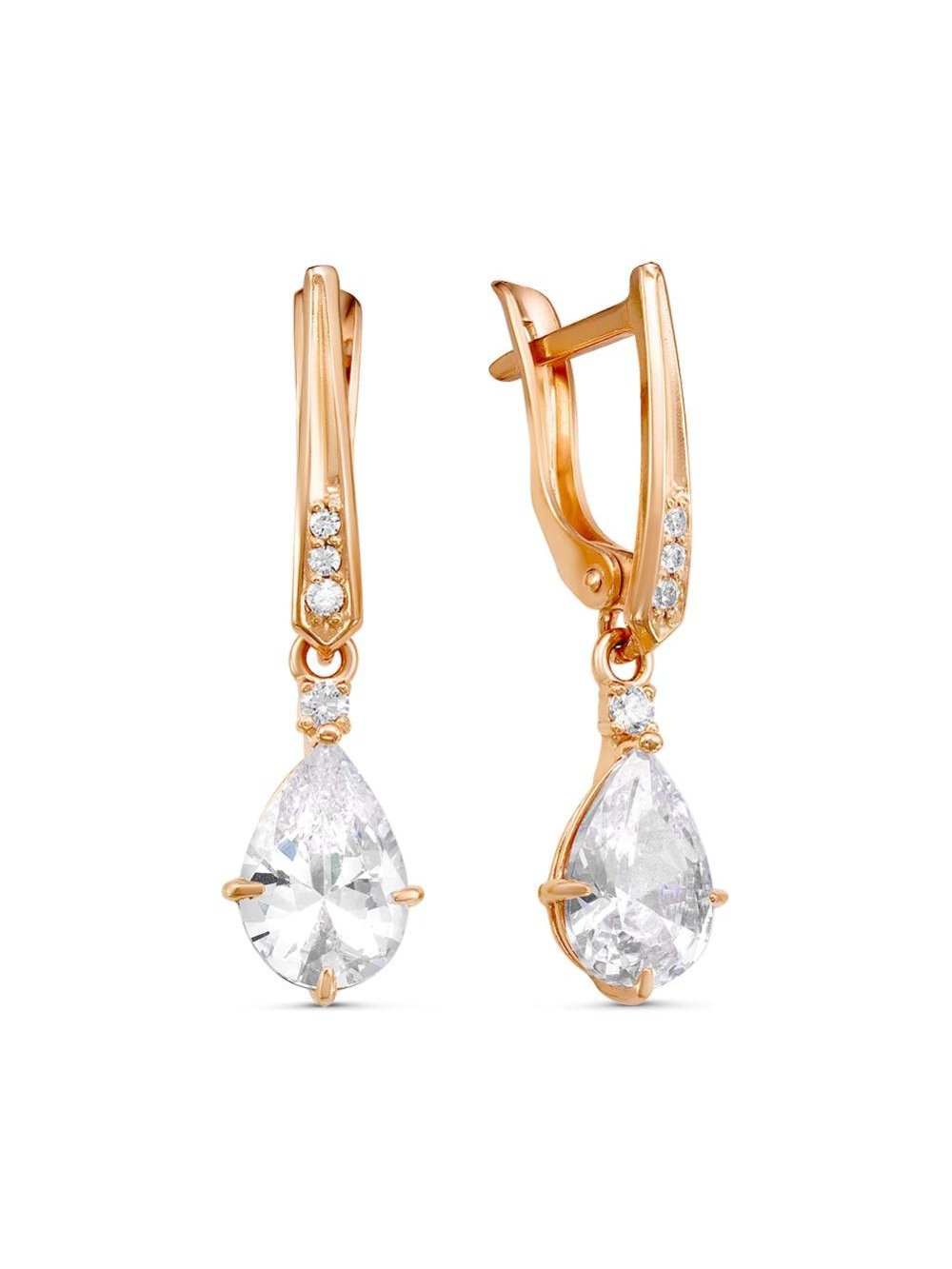 Серьги серебро 925 пробы, покрытие - золочение, вставка - фианит (недрагоценный камень)