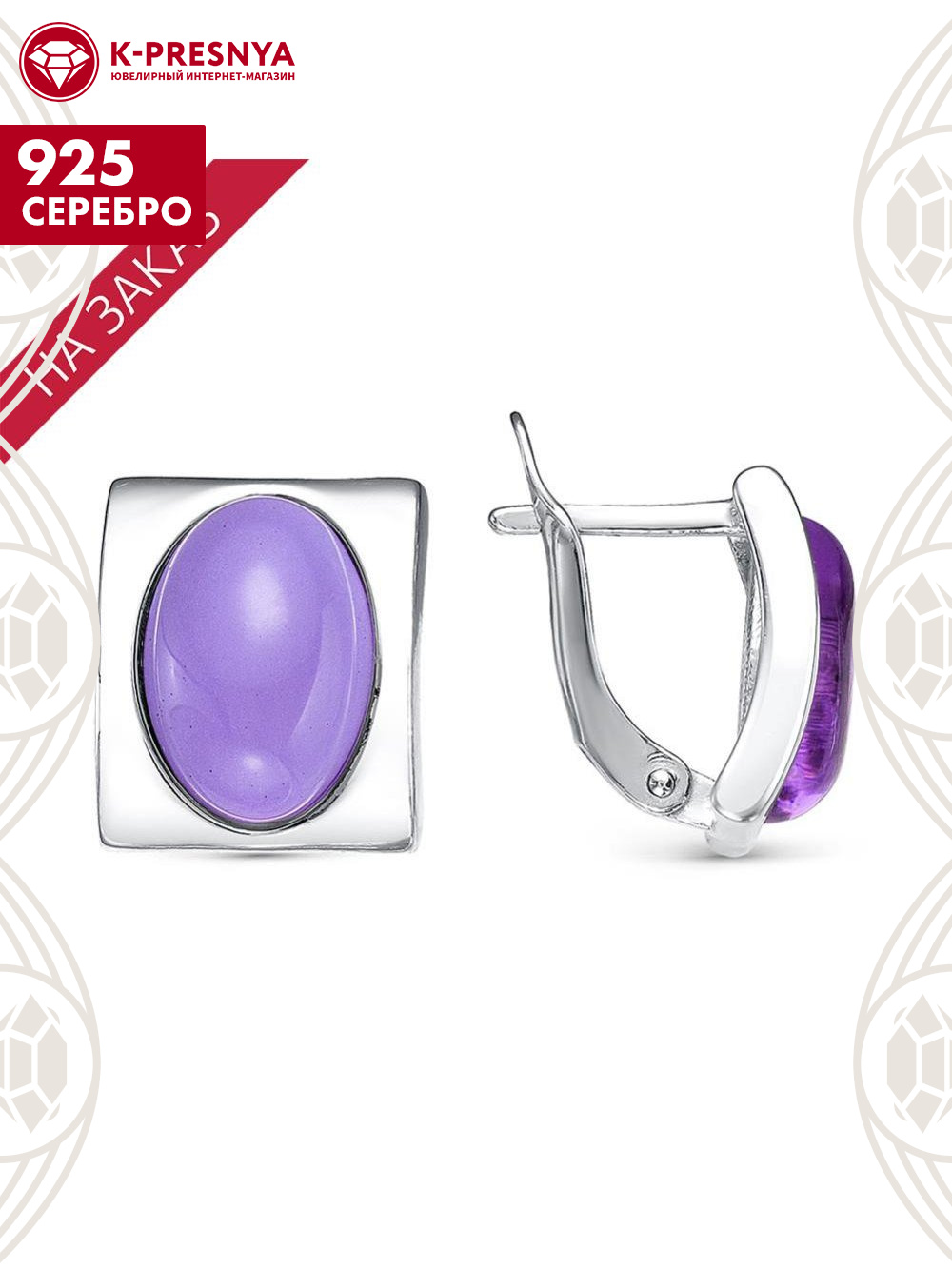 Серьги серебро 925 пробы, покрытие - родирование, вставка - искусственный аметист