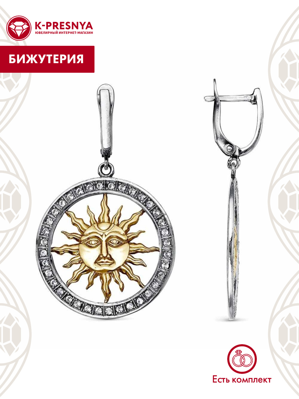 Серьги бижутерия, покрытие - серебрение с оксидированием, выборочное золочение, вставка - стекло ювелирное preciosa