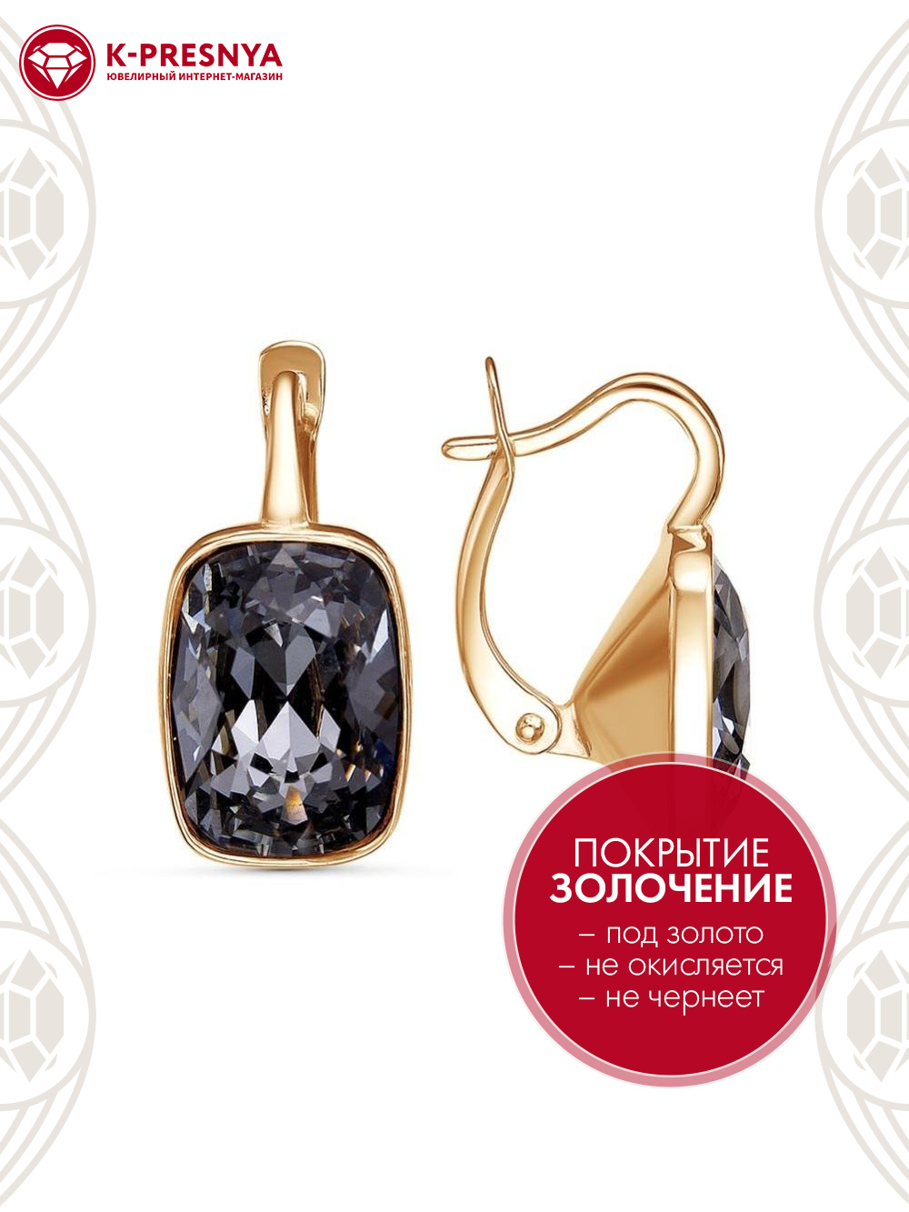 Серьги бижутерия, покрытие - золочение, вставка - ювелирное стекло европейской огранки