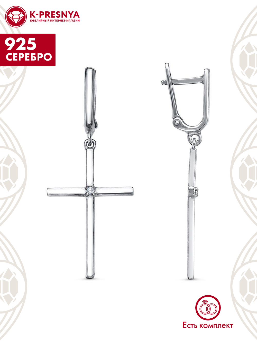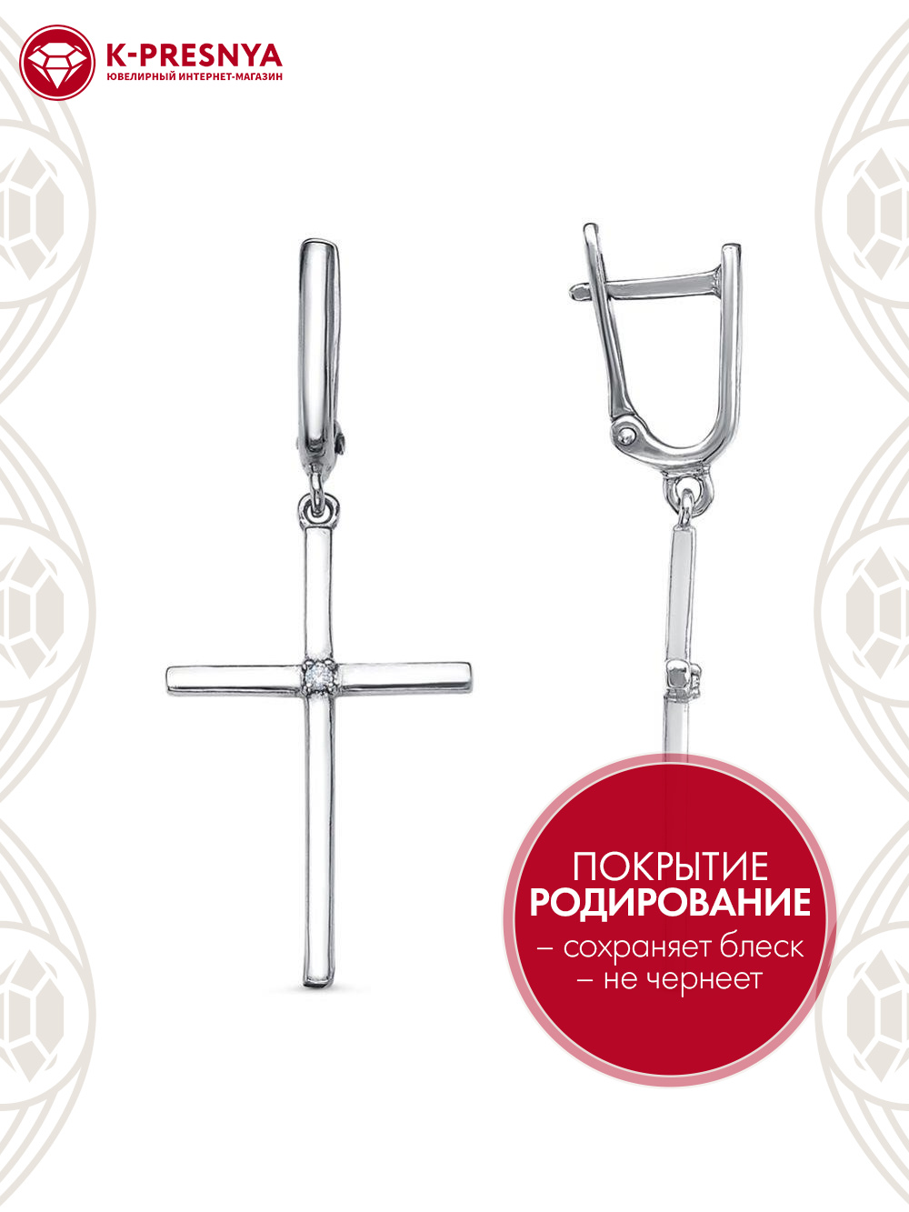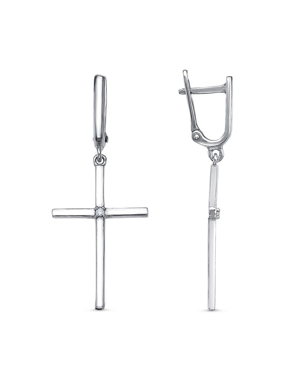 Серьги серебро 925 пробы, покрытие - родирование, вставка - фианит (недрагоценный камень)