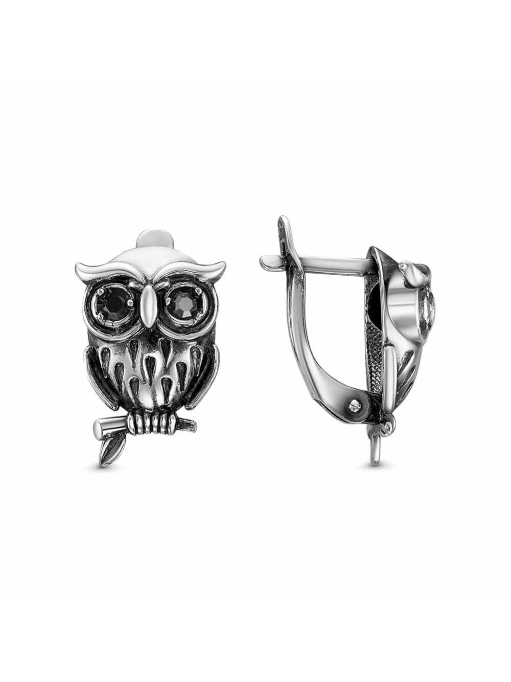Серьги бижутерия, покрытие - серебрение с оксидированием, вставка - стекло ювелирное preciosa