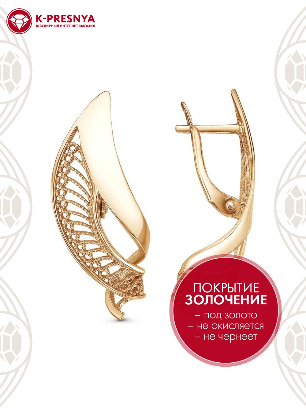 Серьги серебро 925 пробы, покрытие - золочение, без вставок