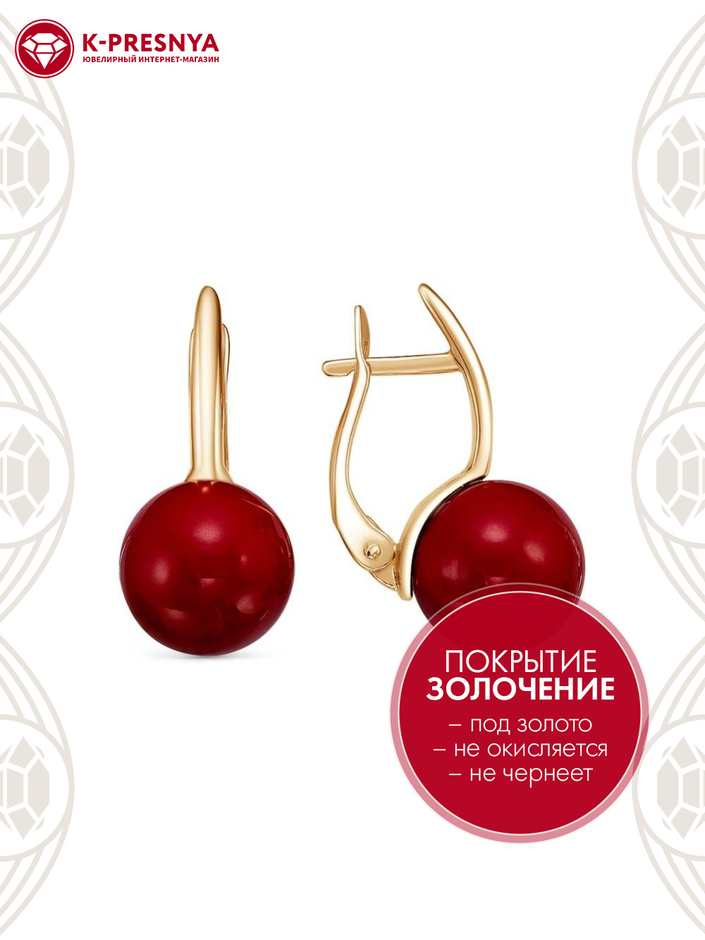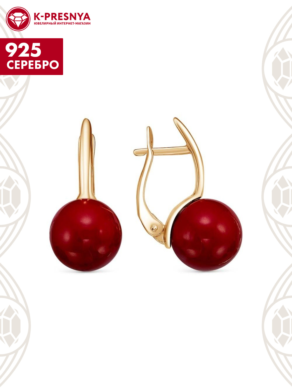 Серьги серебро 925 пробы, покрытие - золочение, вставка - имитация жемчуга