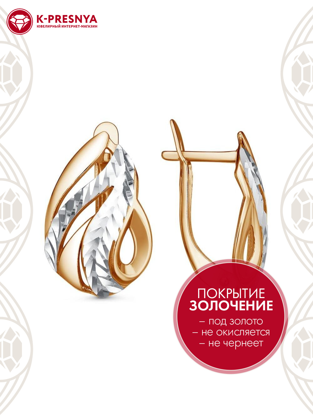 Серьги серебро 925 пробы, покрытие - золочение, отделка - алмазная грань, без вставок