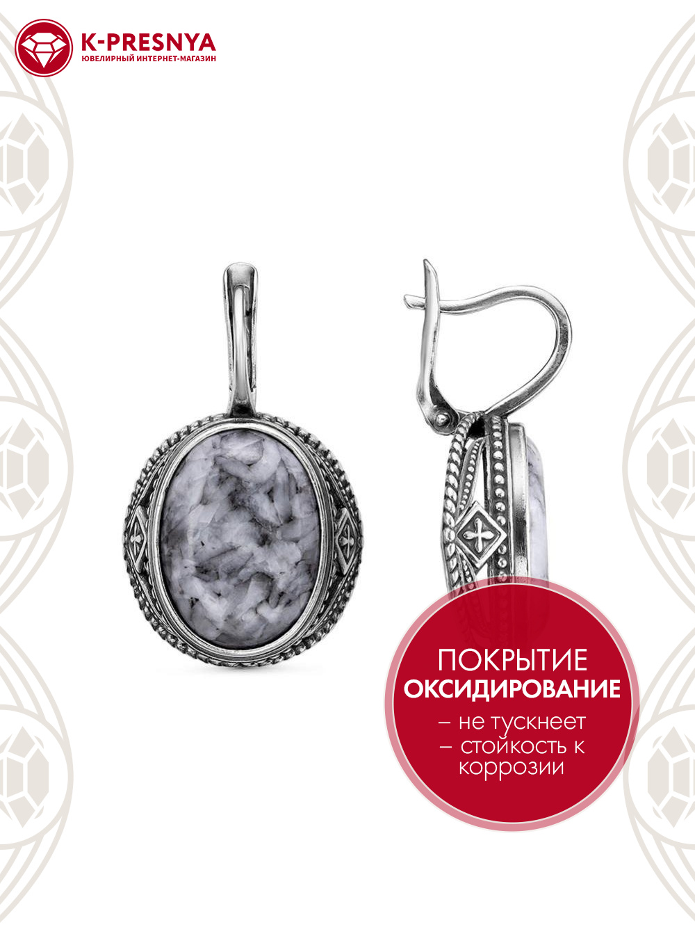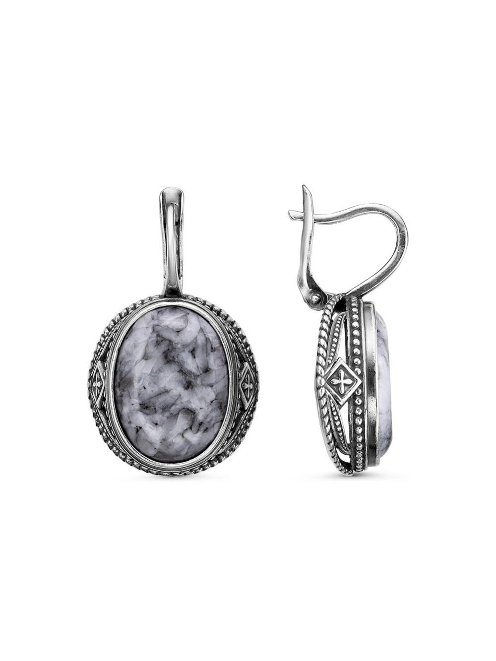 Серьги серебро 925 пробы, покрытие - оксидирование, вставка - пинолит