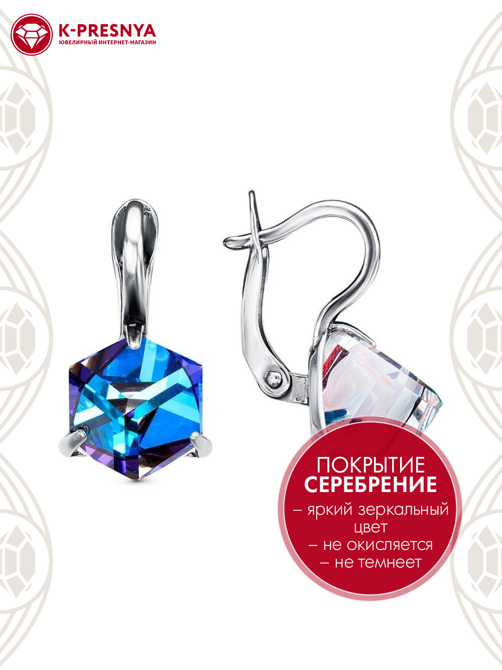 Серьги бижутерия, покрытие - серебрение с оксидированием, вставка - ювелирное стекло европейской огранки