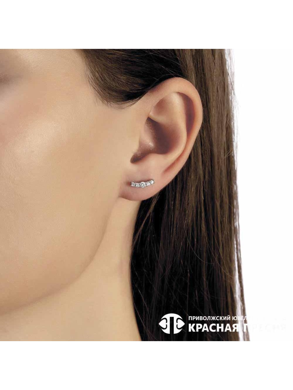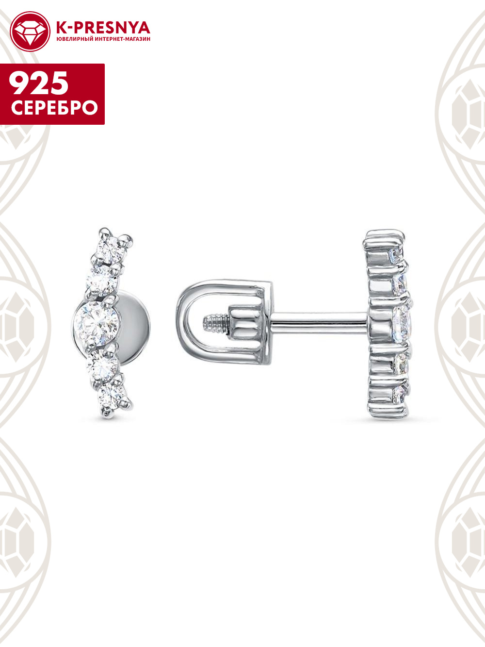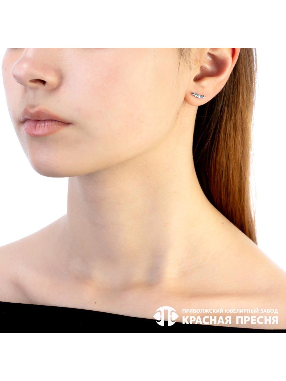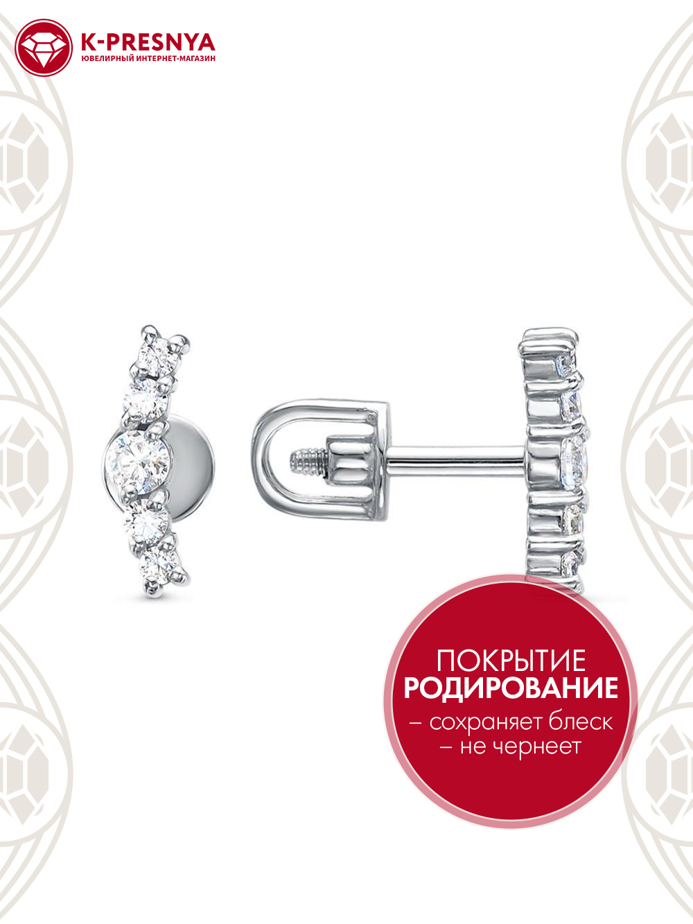 Серьги серебро 925 пробы, покрытие - родирование, вставка - фианит (недрагоценный камень)