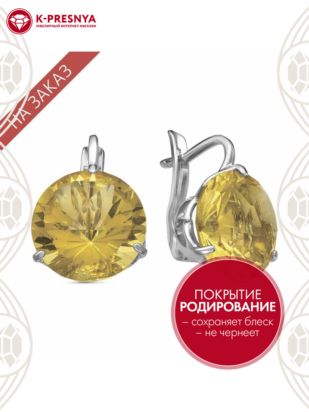 Серьги серебро 925 пробы, покрытие - родирование, вставка - стекло ювелирное собственной огранки