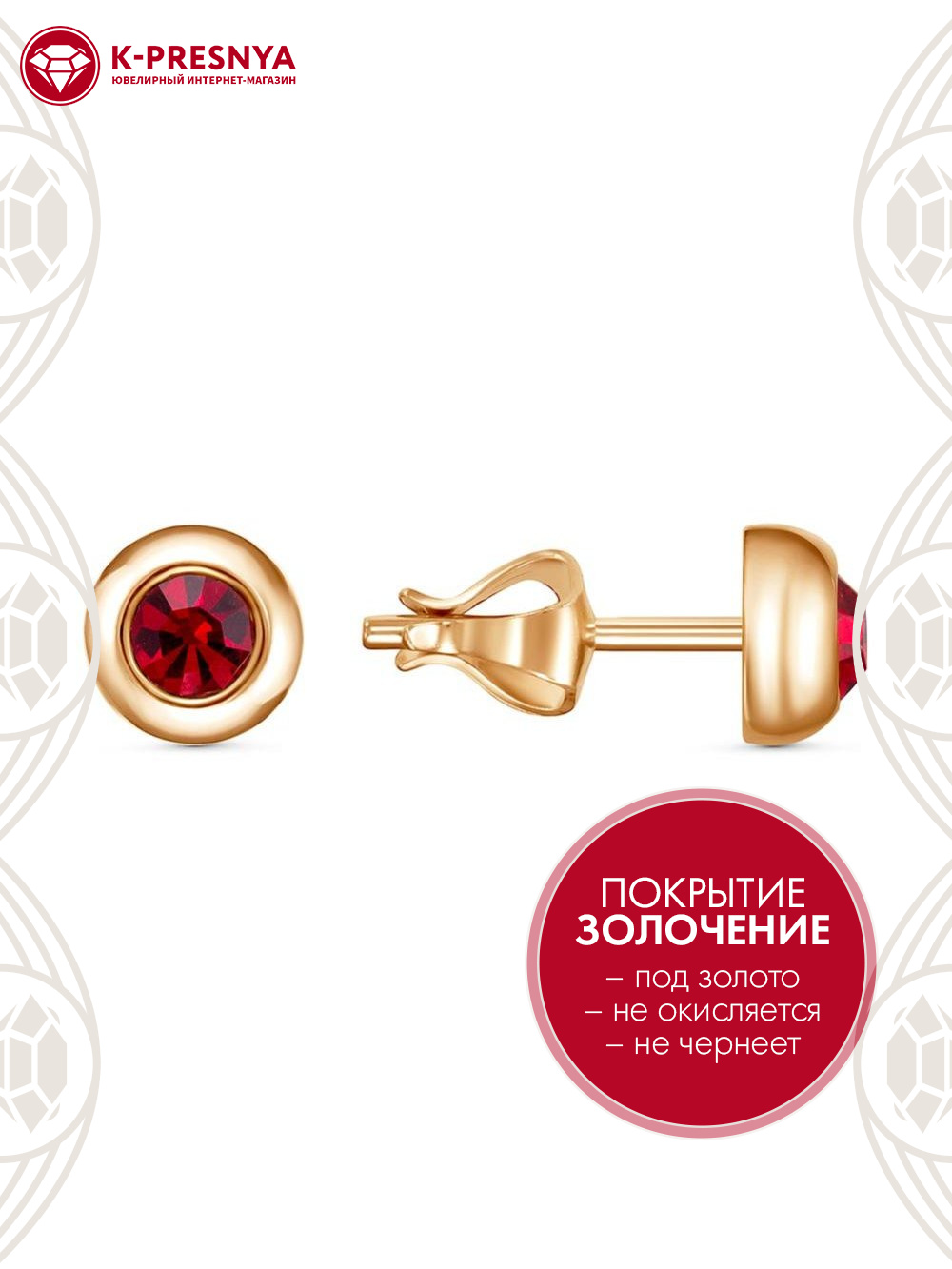 Серьги бижутерия, покрытие - золочение, вставка - стекло ювелирное preciosa