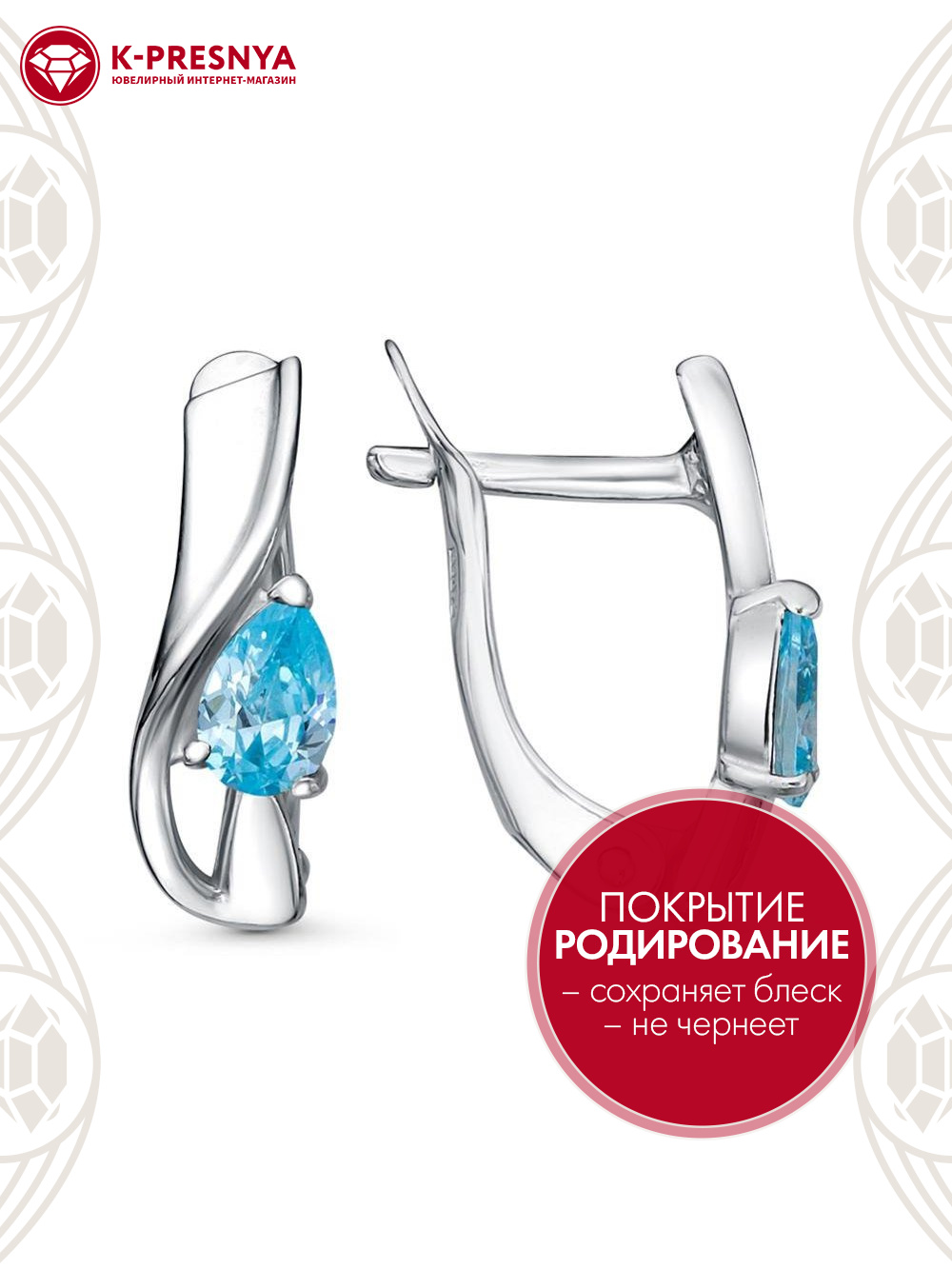 Серьги серебро 925 пробы, покрытие - родирование, вставка - фианит (недрагоценный камень)