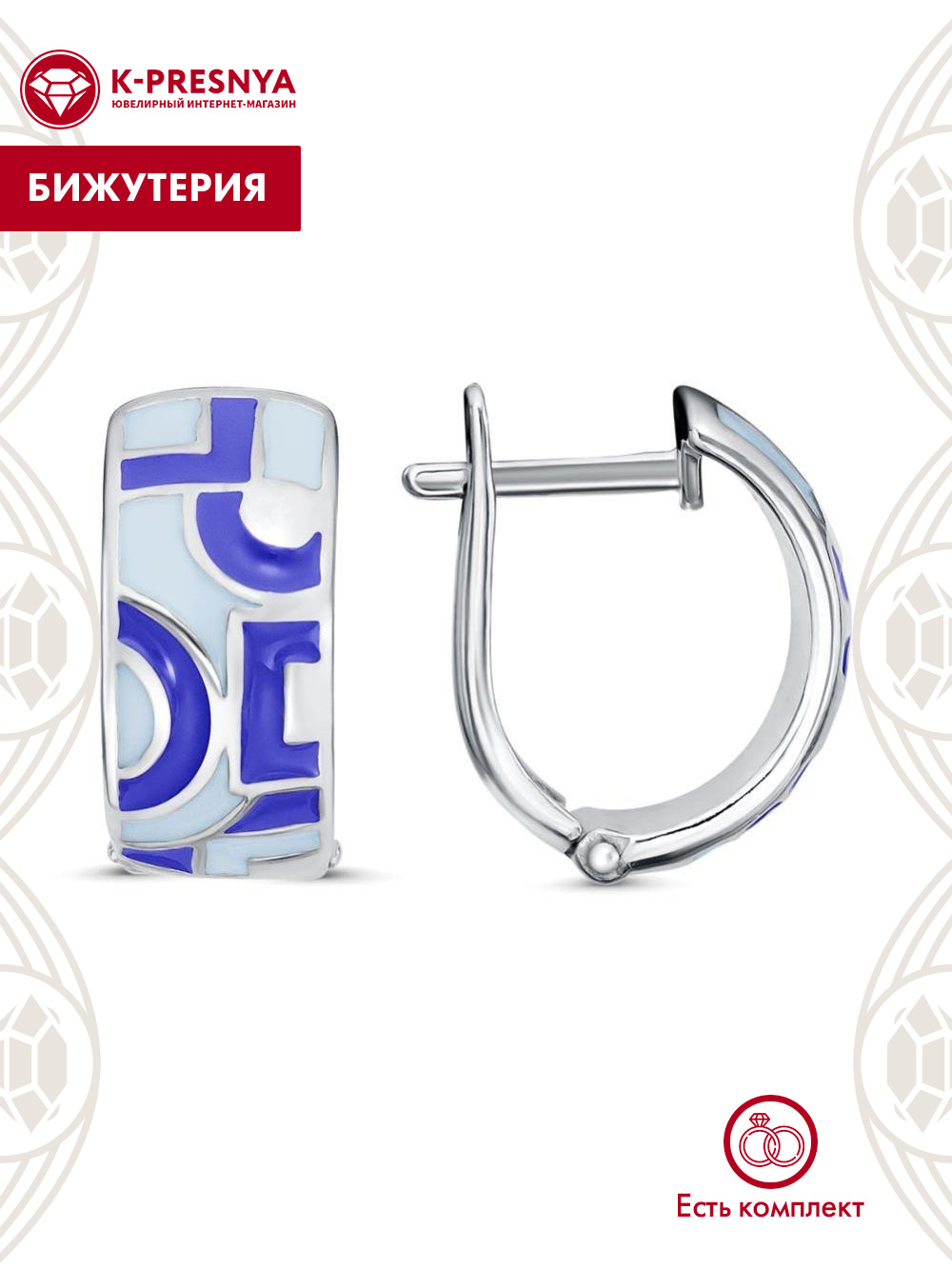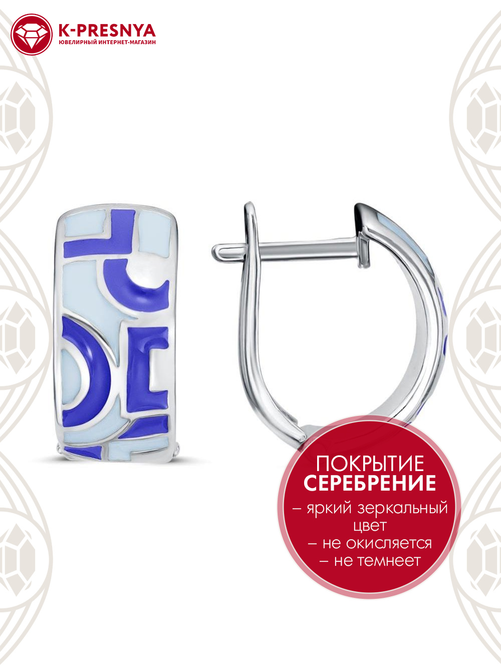 Серьги бижутерия, покрытие - серебрение, отделка - эмаль, без вставок