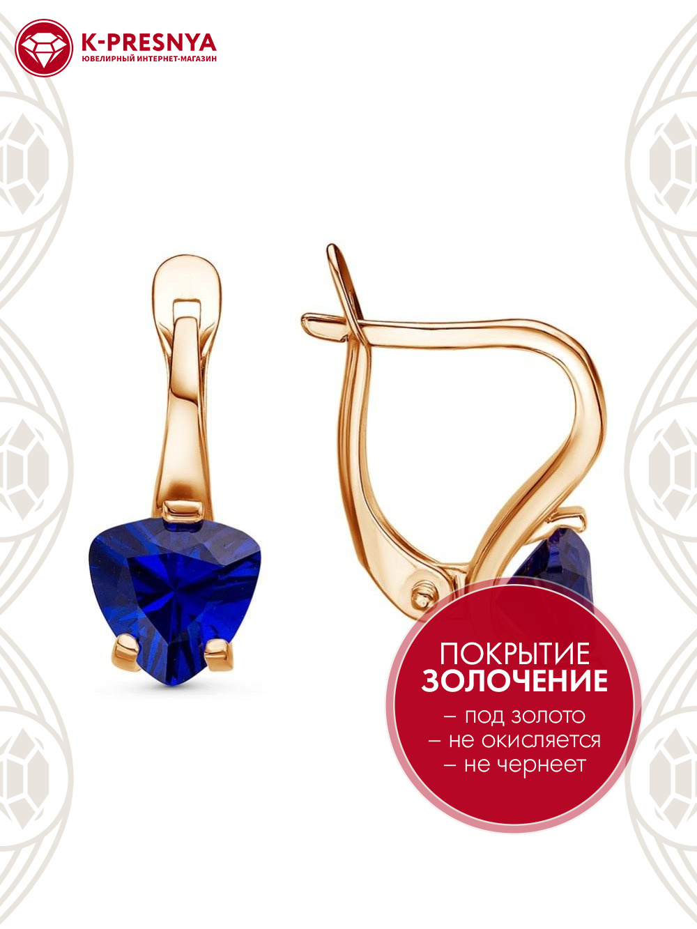 Серьги бижутерия, покрытие - золочение, вставка - искусственная шпинель