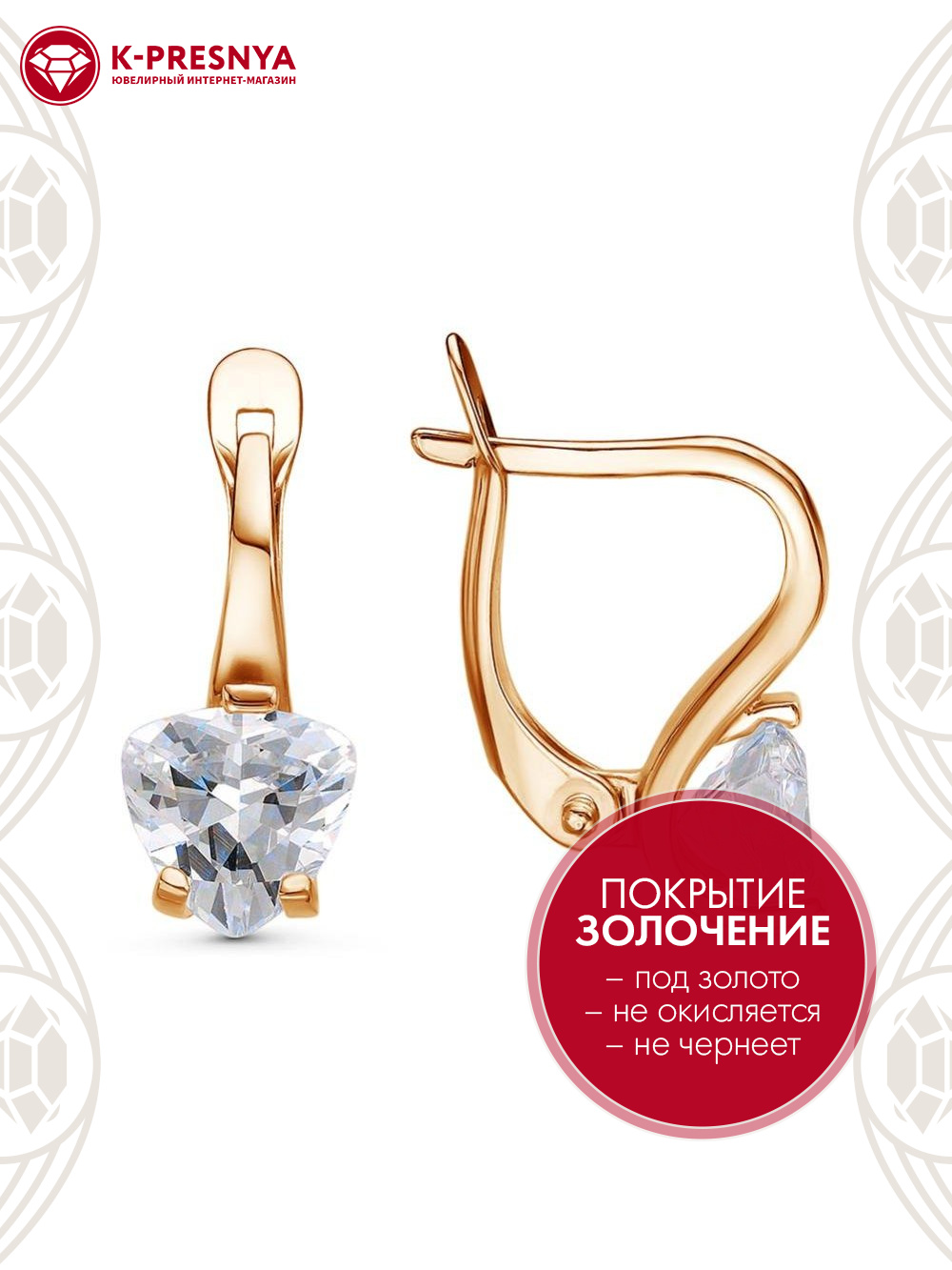 Серьги бижутерия, покрытие - золочение, вставка - фианит (недрагоценный камень)