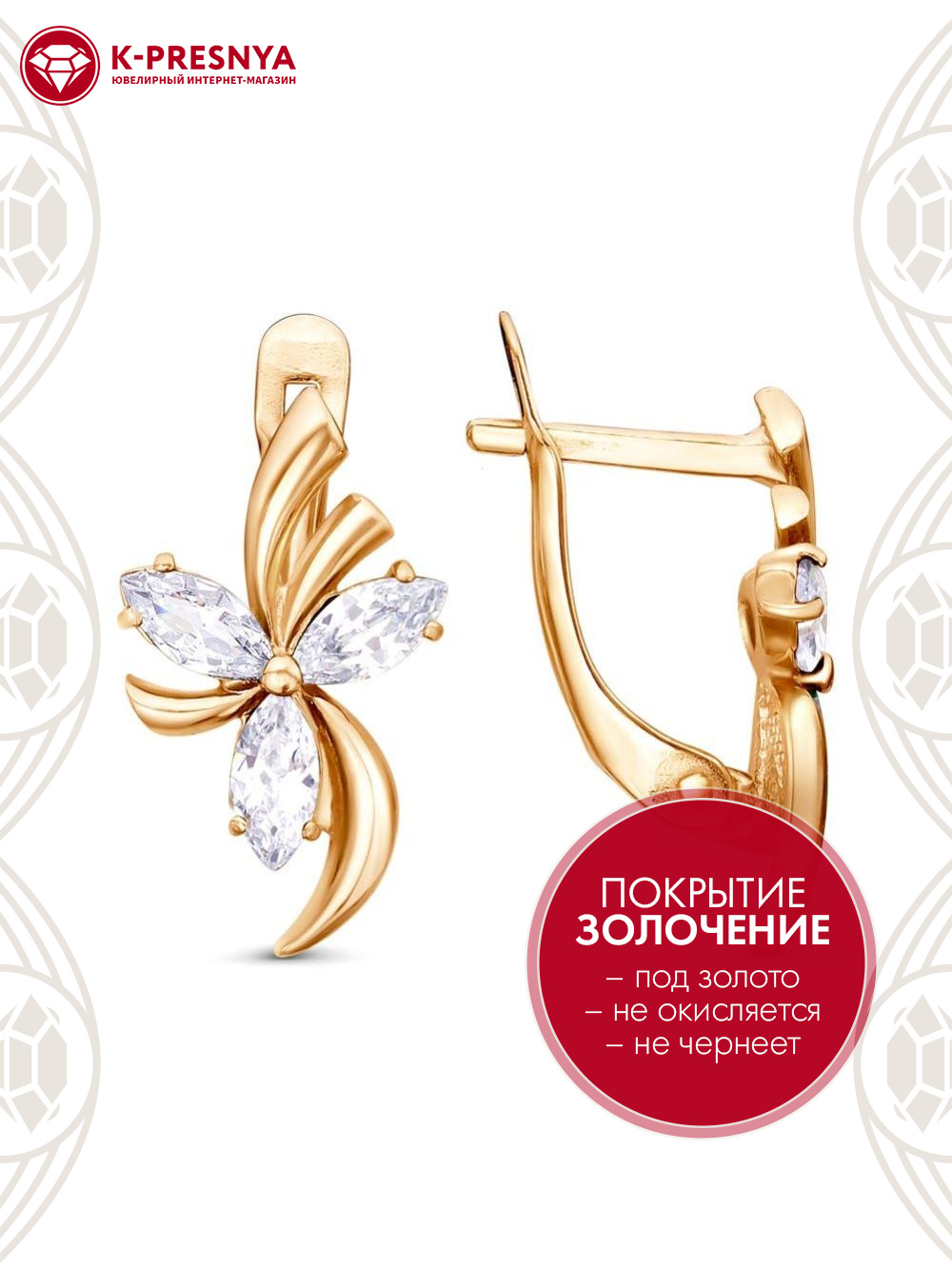 Серьги бижутерия, покрытие - золочение, вставка - фианит (недрагоценный камень)