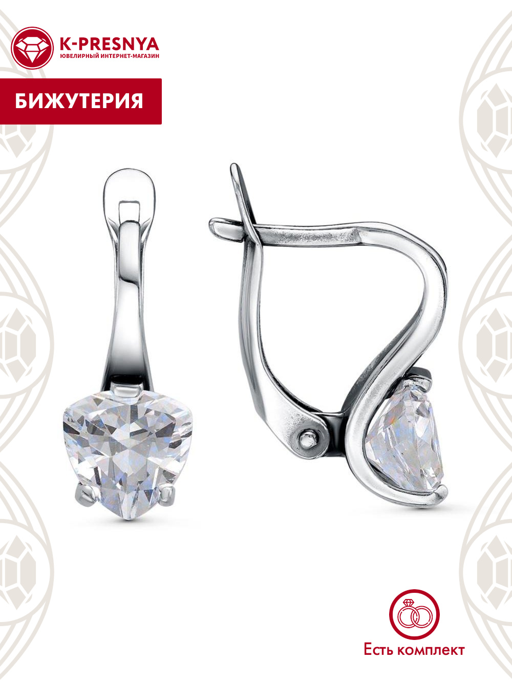 Серьги бижутерия, покрытие - серебрение с оксидированием, вставка - фианит (недрагоценный камень)