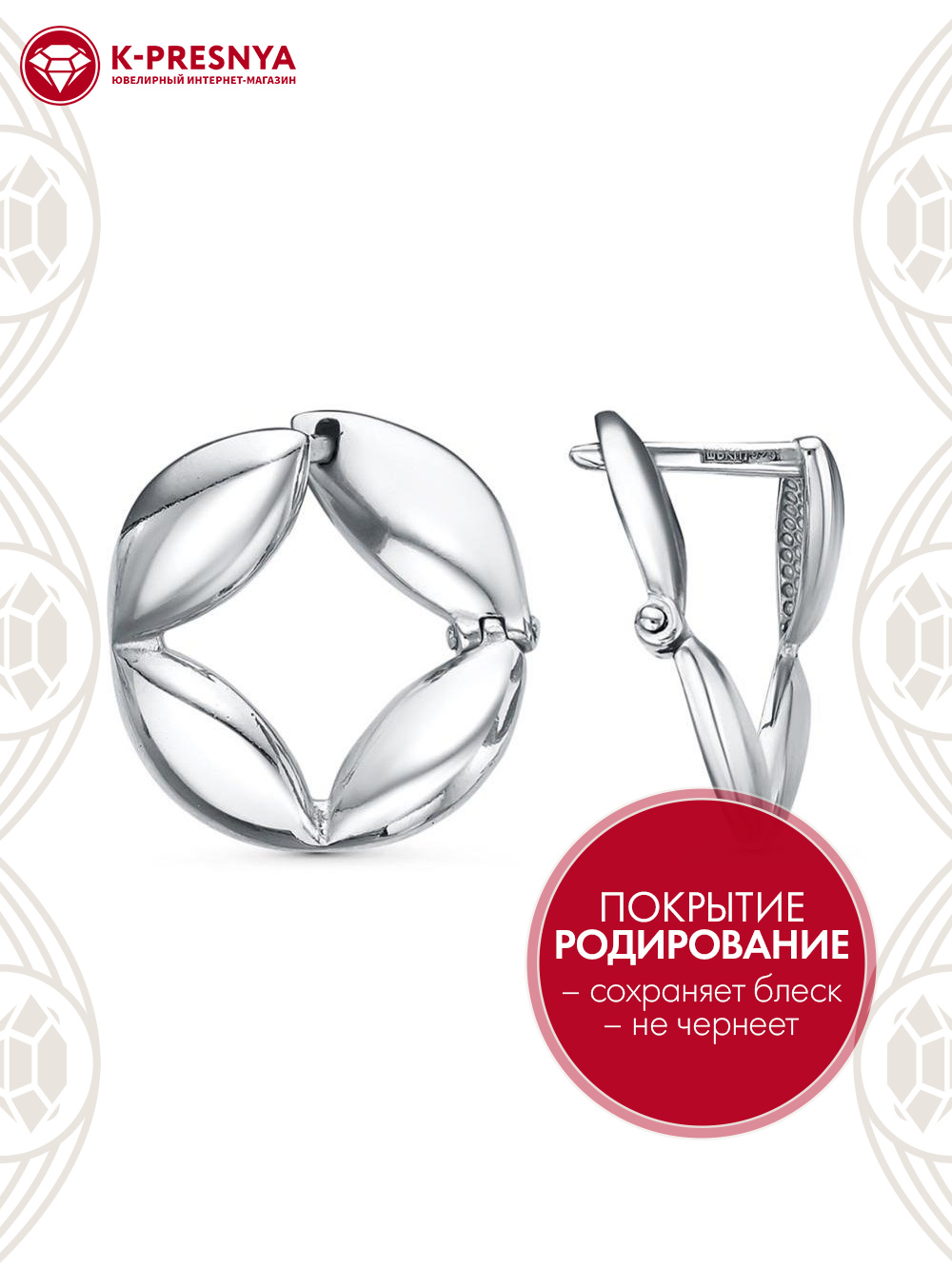 Серьги серебро 925 пробы, покрытие - родирование, без вставок