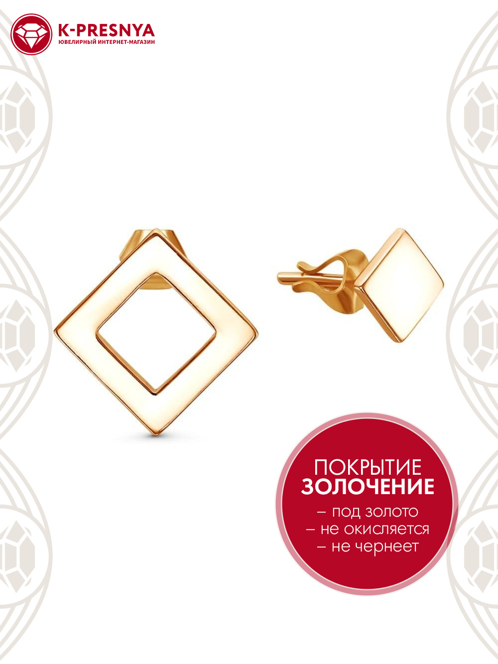 Серьги бижутерия, покрытие - золочение, без вставок