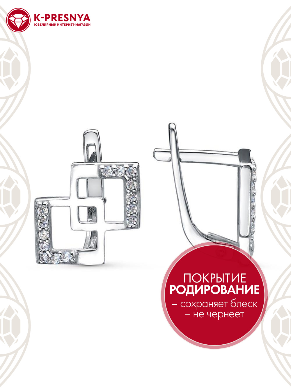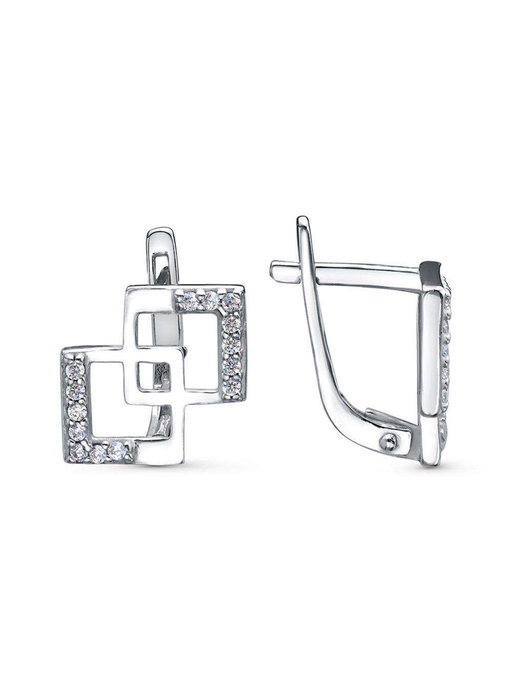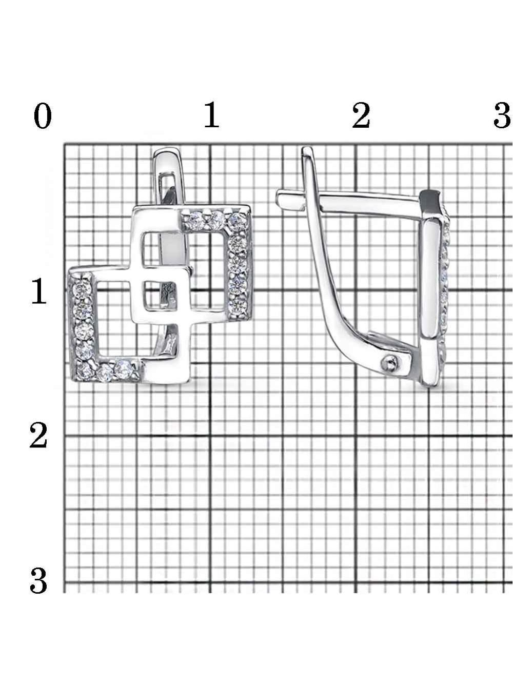 Серьги серебро 925 пробы, покрытие - родирование, вставка - фианит (недрагоценный камень)
