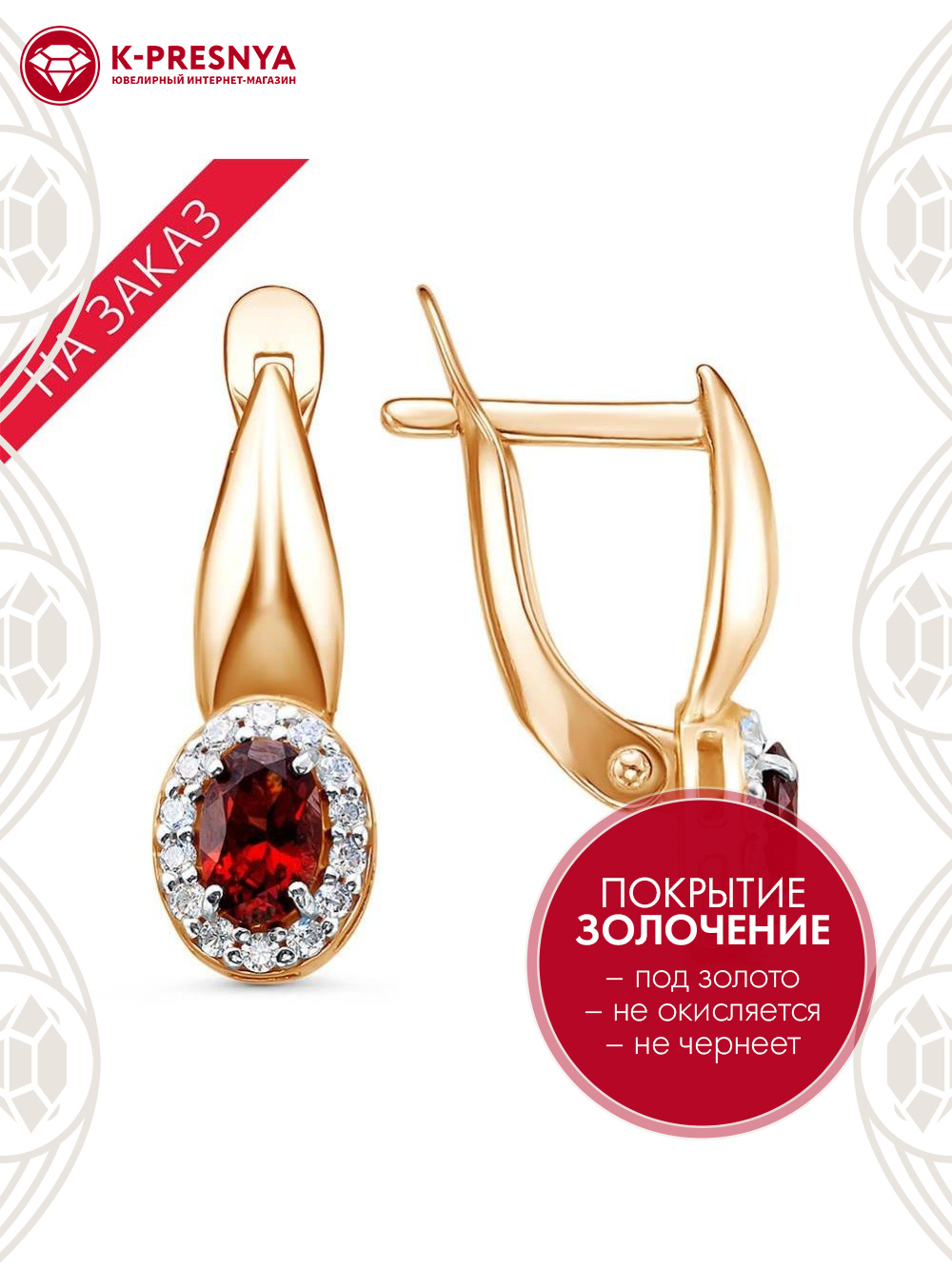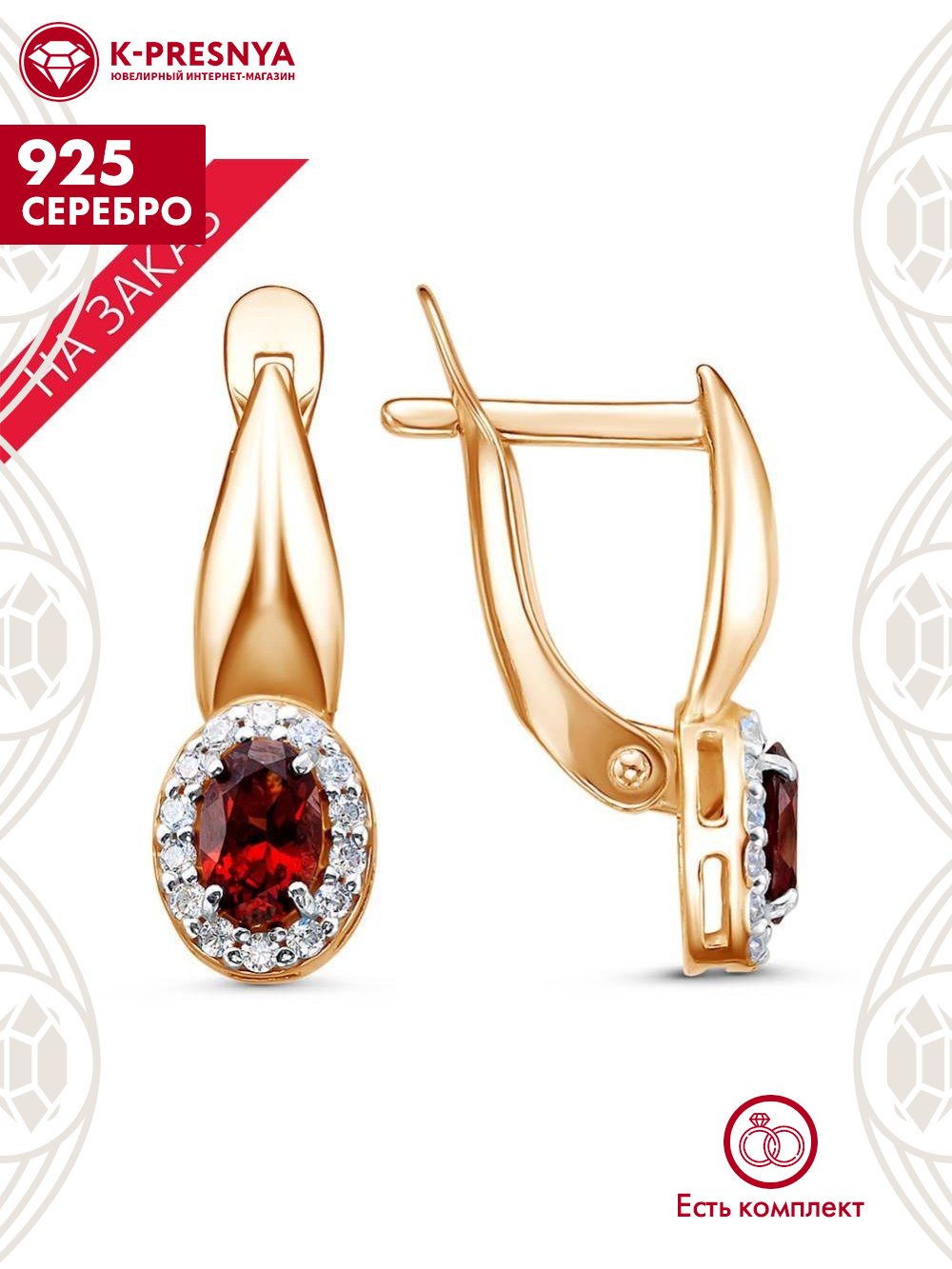 Гранат (полудраг. камень) Овал 0,5ct 6х4мм 2шт; Фианит (недраг. камень) Круг 1,25мм 28шт |
