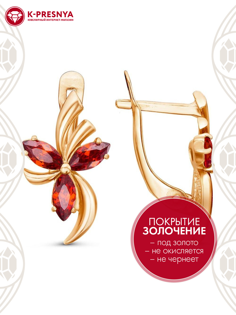 Серьги серебро 925 пробы, покрытие - золочение, вставка - фианит (недрагоценный камень)