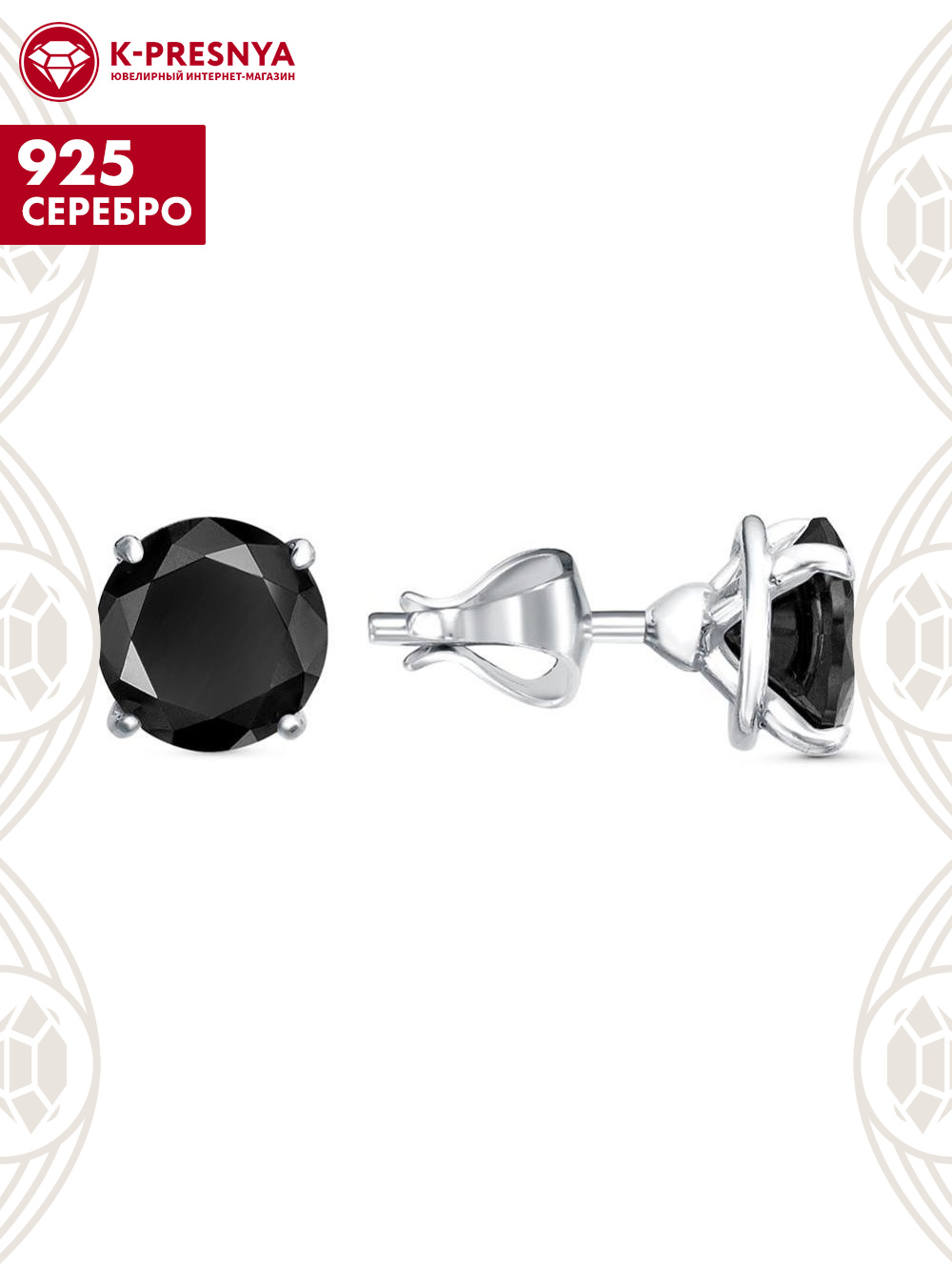 Серьги серебро 925 пробы, покрытие - родирование, вставка - фианит (недрагоценный камень)