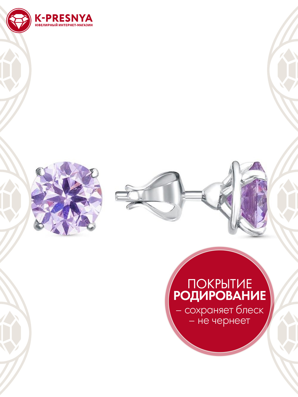 Серьги серебро 925 пробы, покрытие - родирование, вставка - фианит (недрагоценный камень)