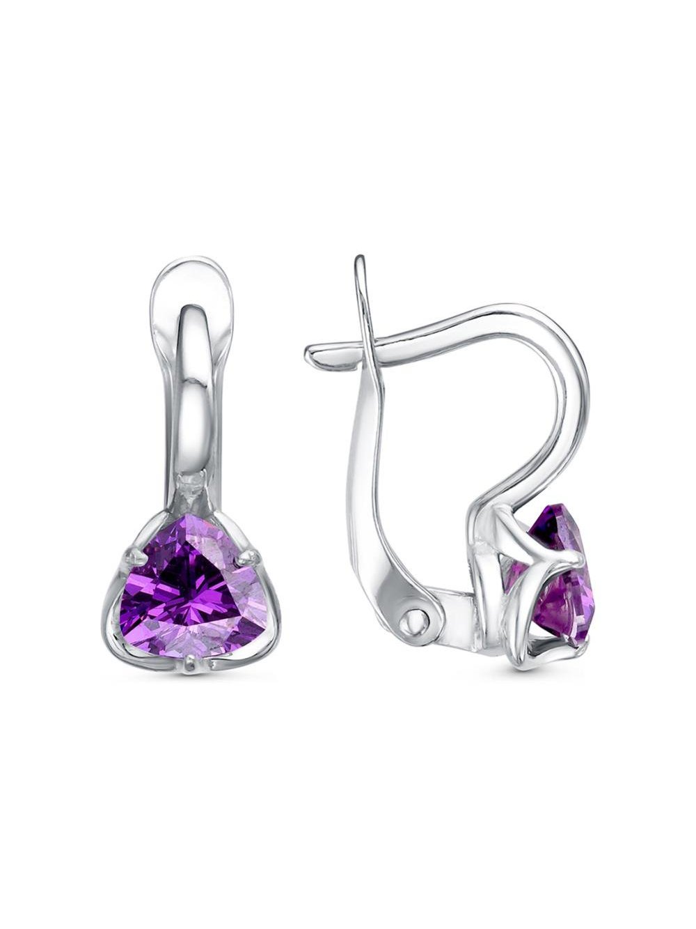 Серьги бижутерия, покрытие - серебрение, вставка - фианит (недрагоценный камень)